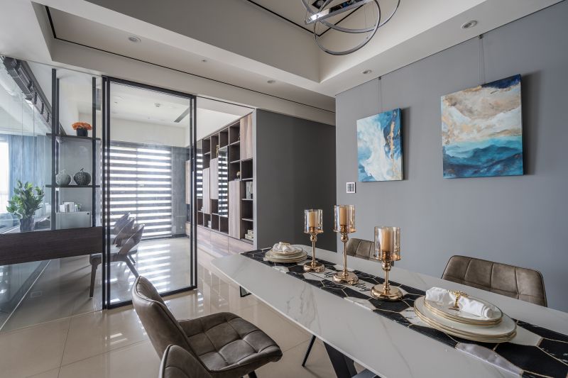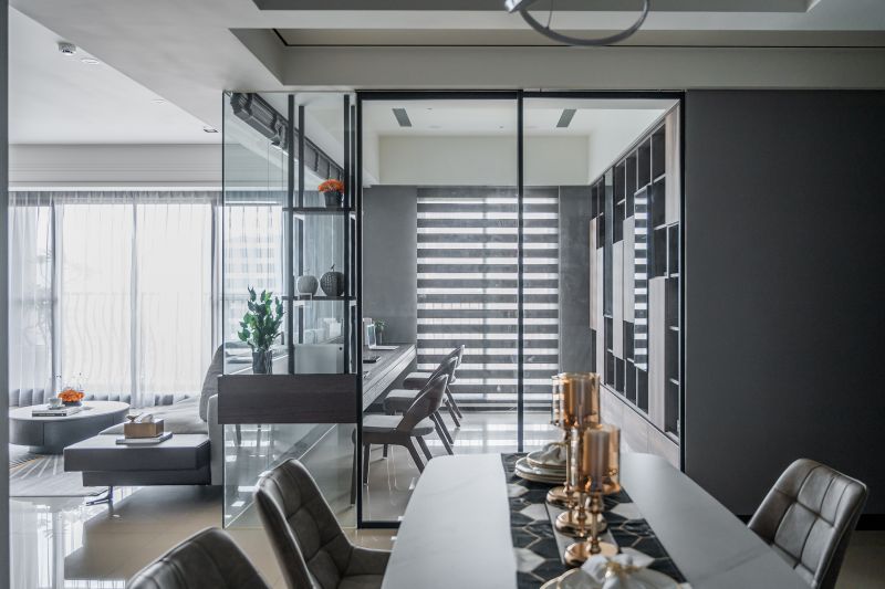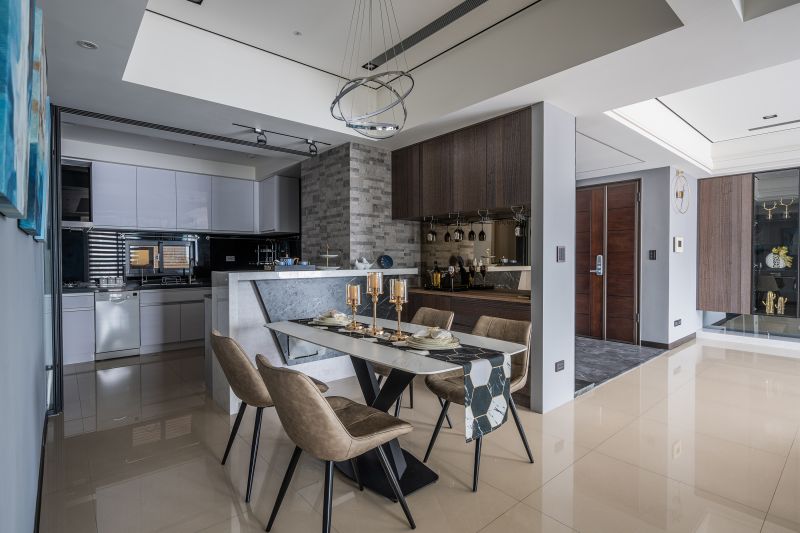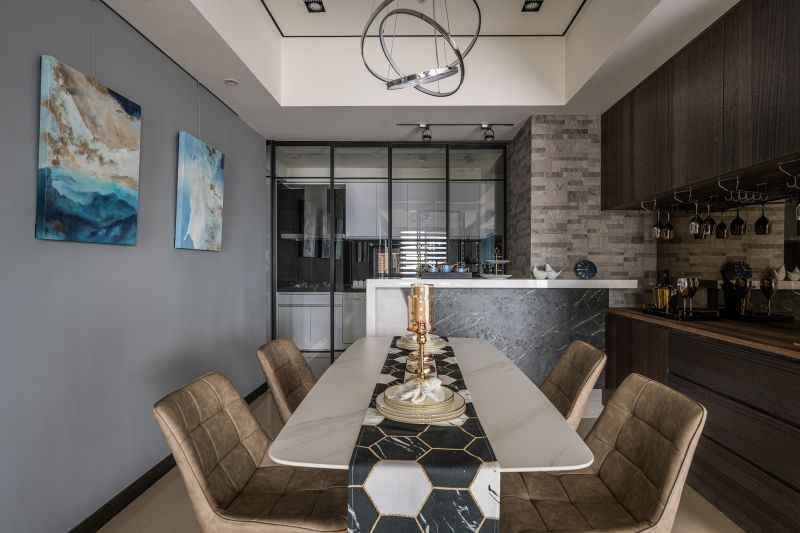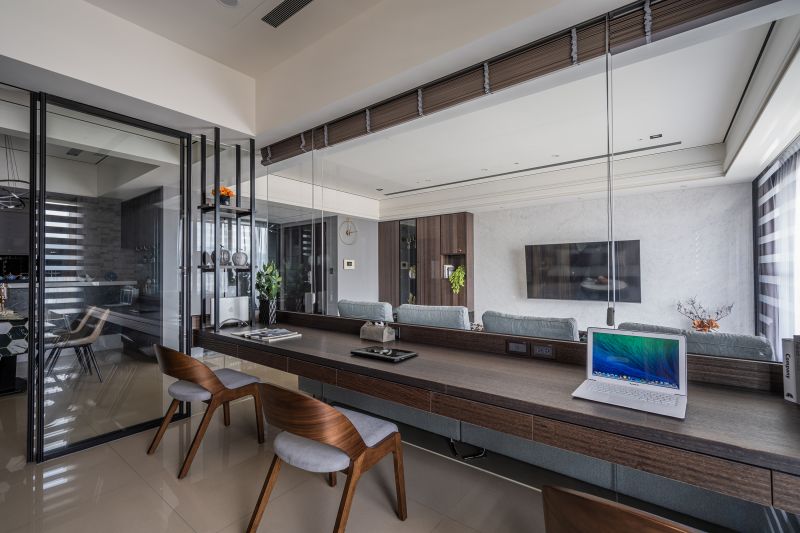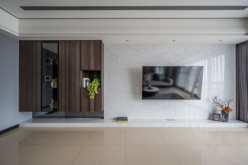Accentuate gorgeous and composed ambiance, cleverly take advantage of roomy space, and set out wooden and stone furnishing agreeably balance the cold and warm tone in the home. The mounting structure of the desk brings a stunning focal point. We smoothly frame the floating desk with veneer to form an atypical layout and allow the owner to swing their imagination. We name it “Perpetual Stood,” taking the pun of stone and wood in Chinese, which means that family always stands by your side and plays a role as dependable as wood and stone.