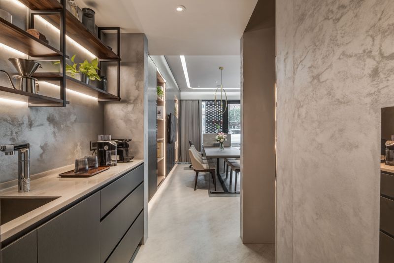 As opening the front door, a silver-gray space comes into view; you may be embraced with an elegant and enigmatic feel like entering a VIP lounge. Alluring abstract artworks complemented with Avant-guard gradient lighting lead aesthetics into a journey of imagination.