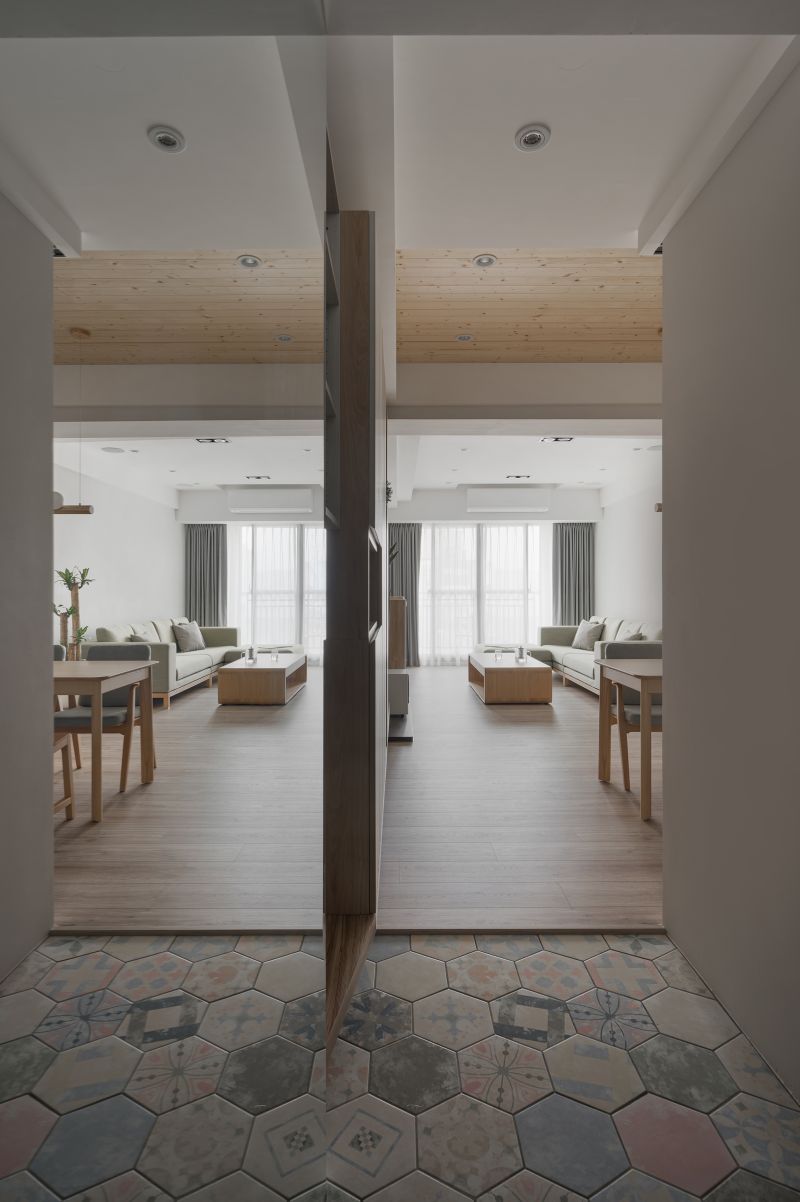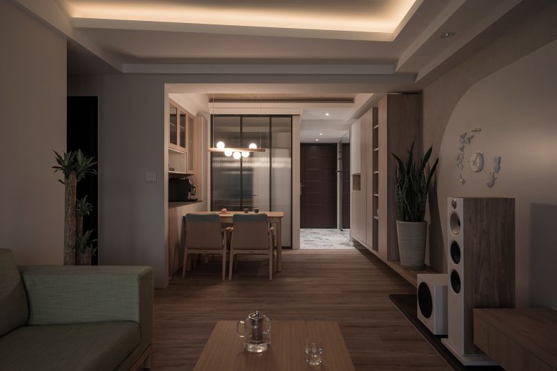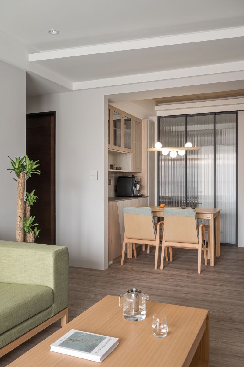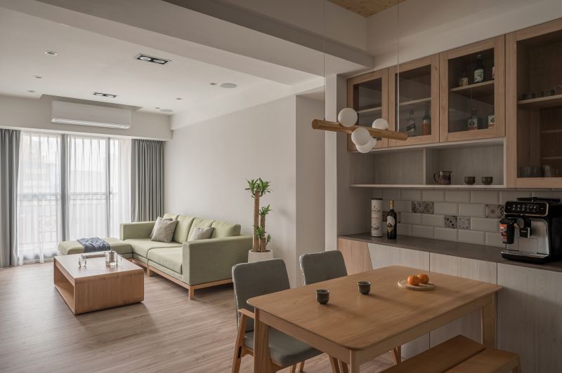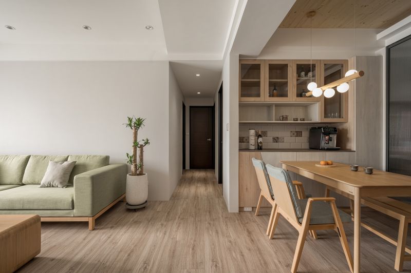 The space is like a clean canvas. A warm and beautiful home scene comes into being through the wooden elements and glamorous light fixtures. We accentuate simplicity and coziness to design the house for newlyweds. For instance, arrange sufficient spaces for the homeowner to organize their favorite objects by needs. And in the shared domain, we adopt a Japanese-Muji style and opt for a Nordic-Simplicity tone in the private area, successfully fulfilling the homeowners' preferences and brilliantly integrating the design with life, creating a relaxed, harmonious situation.