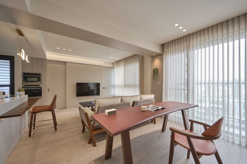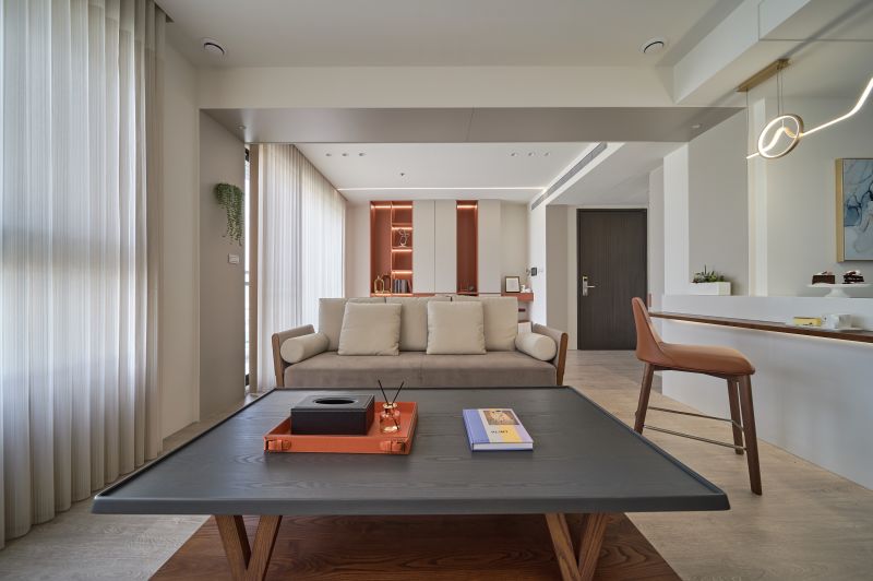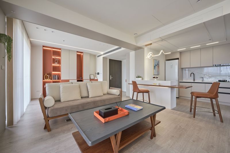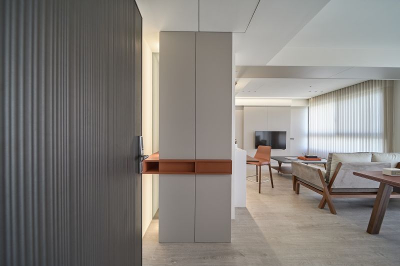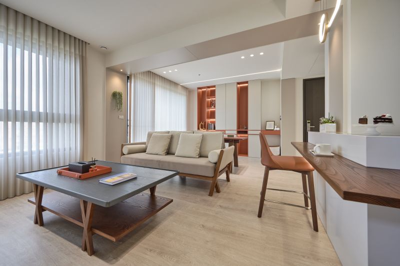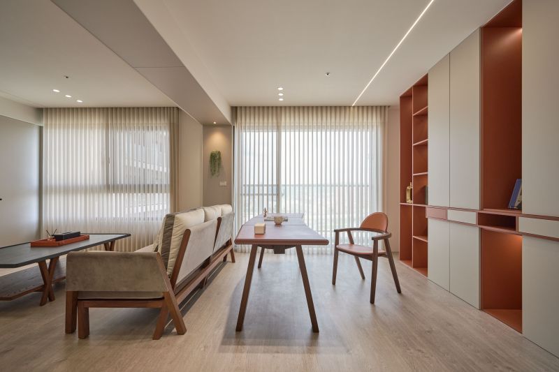 This renovation project for a 53 square meter residence was inspired by Chinese "vertical scroll paintings". The central axis serves as the focal point, with the sky and earth above and below it. By visually connecting and stacking the four focal points, the space is transformed into a painting through the clever use of proportions. The design focuses on natural lighting and the needs of the reading area.