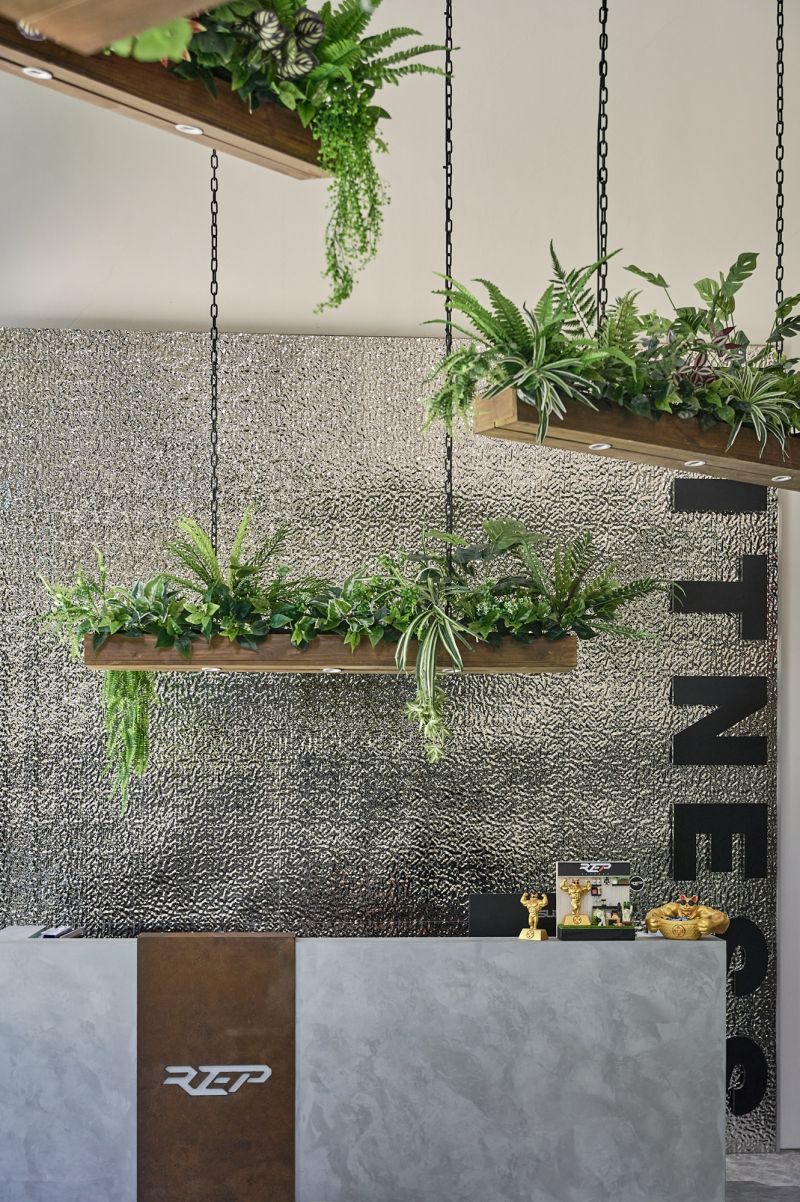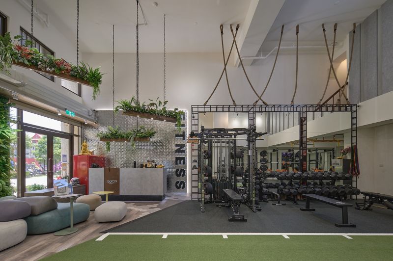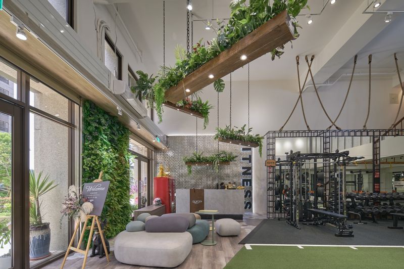 Away from the hustle and bustle of the city, the loft-style design opens up an unrestricted scene for workouts. With a high ceiling, the gym emphasizes the vertical axis, offering a transparent view as well as maximizing the amount of light. Instead of adopting typical abrasive and vivid colors that most gyms use, REP Fitness features hand-applied paints, green plants, and warm wood accents to allow visitors to immerse themselves in the gentle pace and offset the bold and striking atmosphere. This is a place to unwind the mind and body.