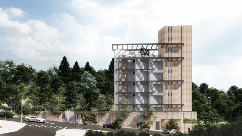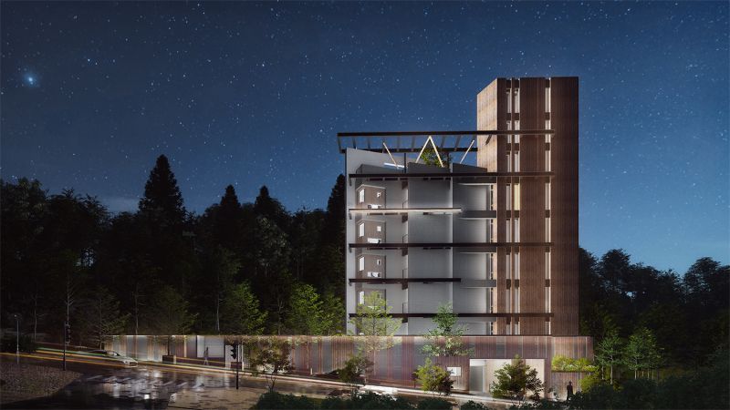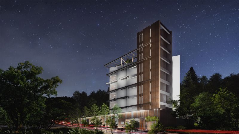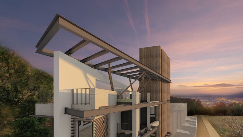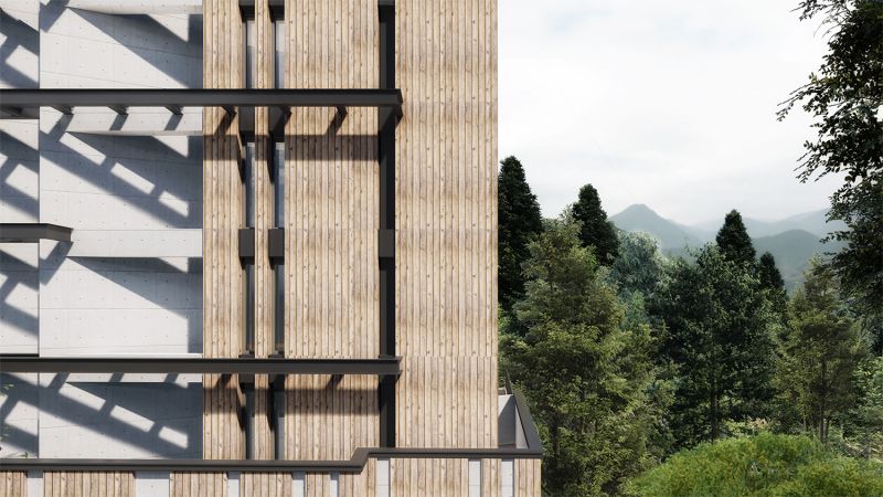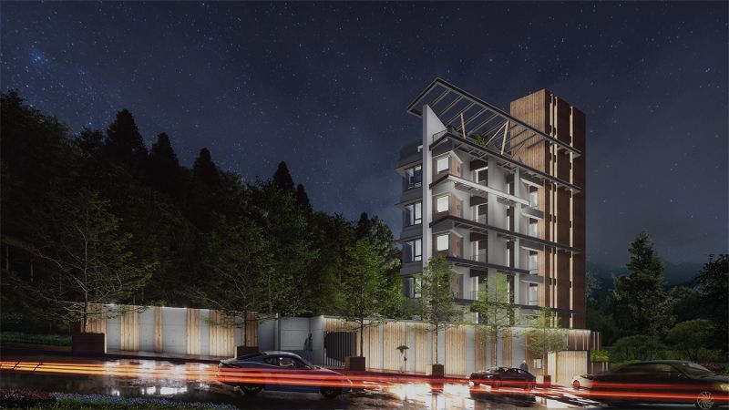 For this residential architectural design project, the architect takes into account the utmost comfort of its inhabitants while seamlessly integrating with the surrounding natural environment. The location, situated between the bustling city and the majestic mountains, has greatly influenced the use of raw concrete texture and solid wood panels for the façade, instead of the more commonly used tiles and stone. The architects have aimed for a simple yet low-key design that beautifully complements and blends in with the neighborhood.
