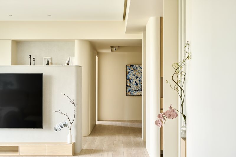 The designers considered the homeowner's preferences and adeptly integrated a palette of creamy colors, along with the warm and inviting texture of wood veneer. To further enhance the atmosphere of comfort, the scent of books was also introduced, creating a cozy ambiance for all the residents to enjoy. Moreover, the designers thoughtfully included a play area for the children to play and have fun in the public space, while also ensuring that the homeowner and his wife had a dedicated office area where they could attend to their individual needs, all while keeping their children safe.