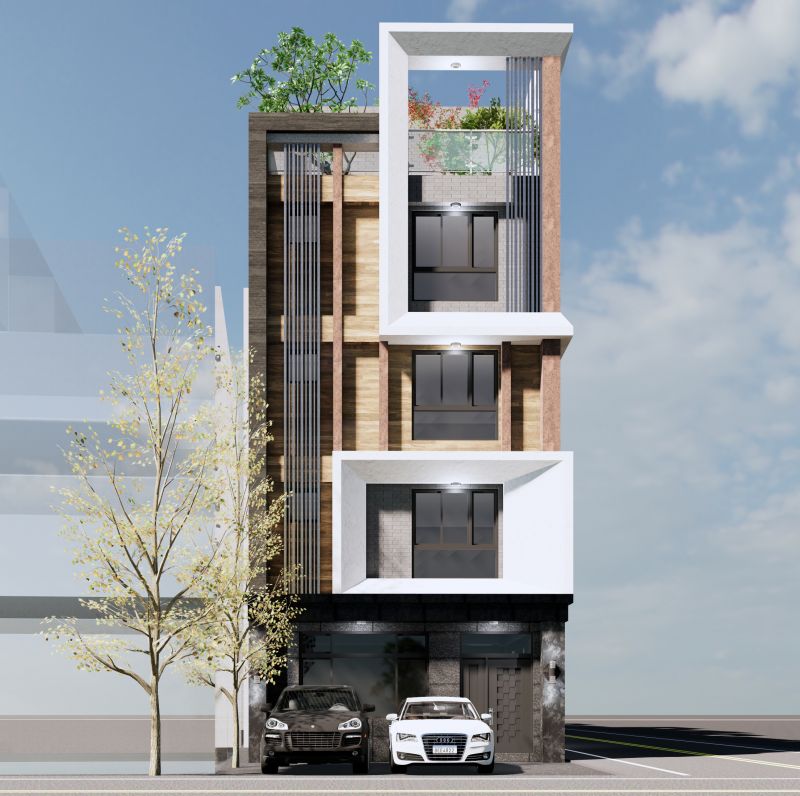 This exquisite residential house design is a testament to the harmonious coexistence of architecture and nature. Situated at the meeting point of urban and natural landscapes, the design embraces the use of natural materials such as stone and wood tiles, creating a facade that seamlessly blends with its surrounding environment. Beyond the captivating facade, the architects have meticulously catered to the needs of the residents, providing ample parking space and strategically planning multiple window openings to invite natural light and scenic views into the living spaces.