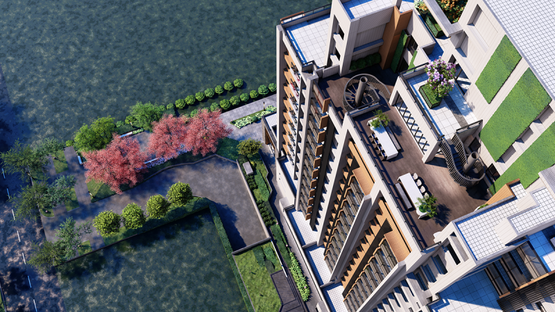This visionary residential development plan encompasses two exquisitely crafted buildings, designed in a light classical style, nestled within a verdant landscape of rolling hills and tranquil waters. The architectural vision draws inspiration from the enchanting surroundings, seeking to create a modern, yet ecologically conscious ambiance that encapsulates the essence of the "City of Mountains and Sea." Strategically positioned windows seamlessly integrate the natural beauty of the outdoors, fostering a harmonious relationship between the urban fabric and the serene natural environment.