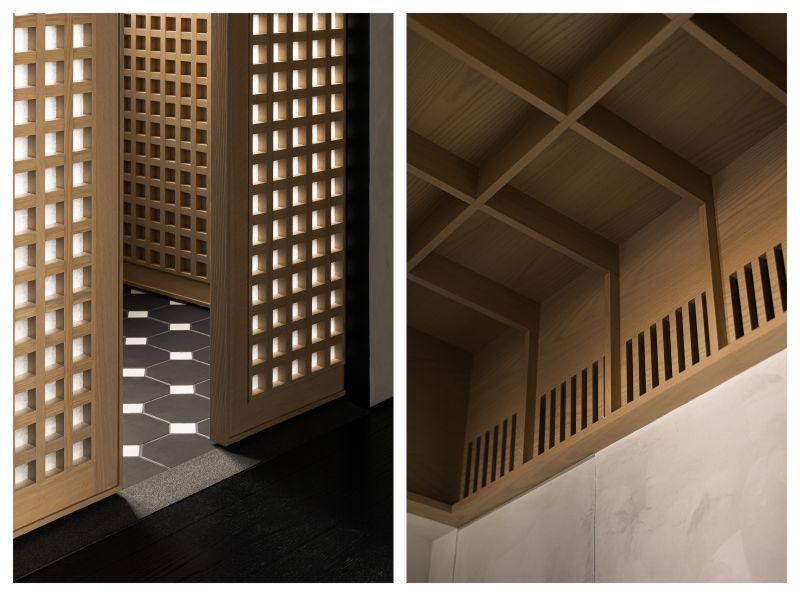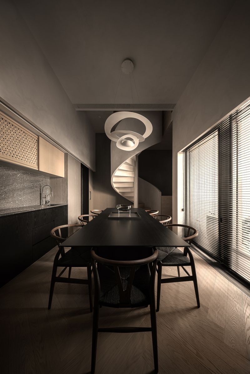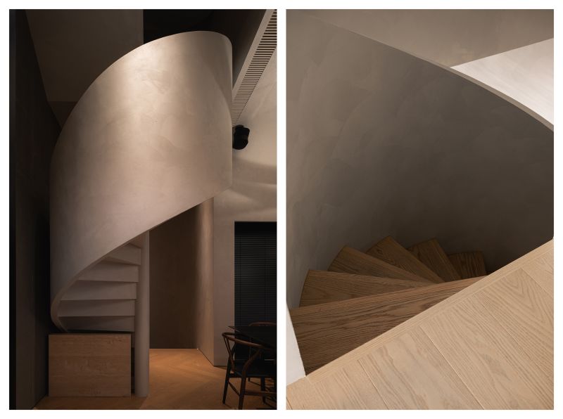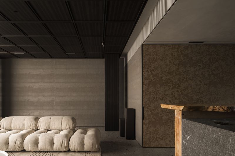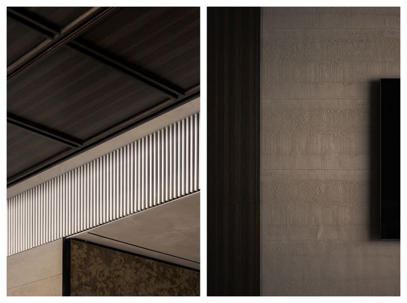 In terms of materials, selections were made to regulate indoor humidity and provide stain resistance to ensure durability. geometric lines putting in order and color blocks in scale are used to create a contrast of light and shadow, enhancing the aesthetic appeal of the overall architecture.