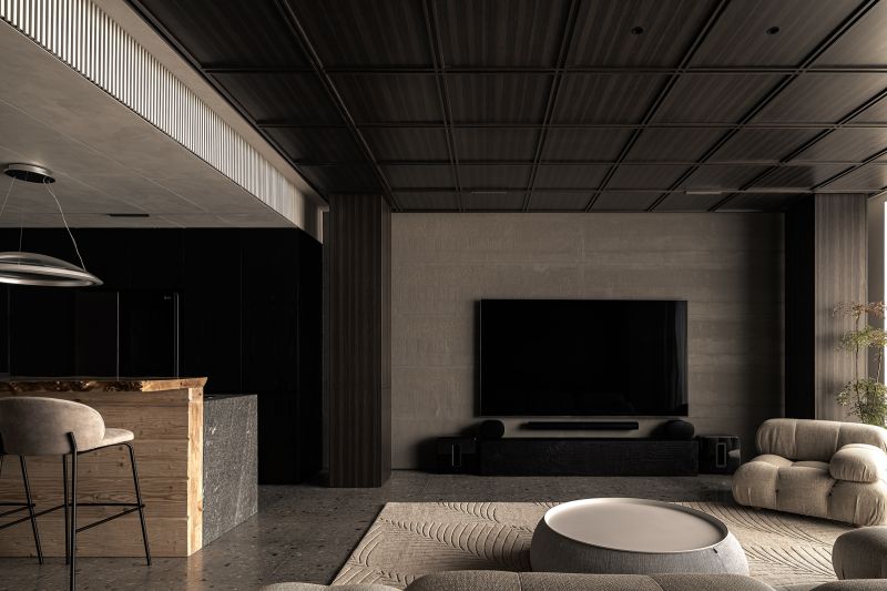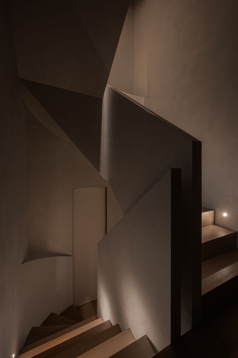 The project presented a duplex apartment in a coastal area. The design in space is functionally divided by floors: the ground floor serves as living room, and the upper floors progressively increase in privacy according to its usage.