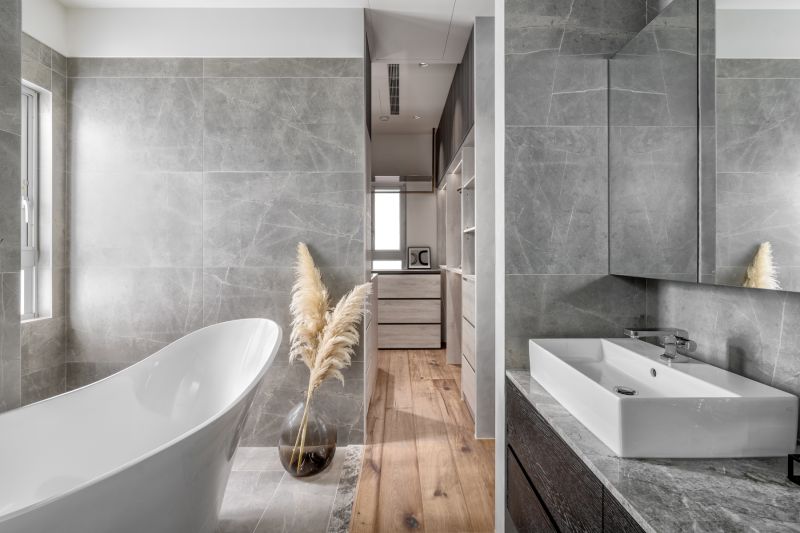 A carefully curated interplay of warm gray stone and wood-grain textures is enriched by subtle amber accents, achieving a delicate equilibrium between tactile warmth and refined contrast.