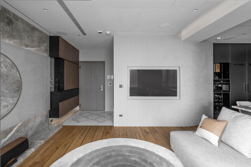 The designer tailored the space to complement the homeowners’ living habits. Since the residence is in a persistent humidity region, the designer thoughtfully installed a whole-house dehumidification system, Meticulously treated the walls with a specialized wax coating that repels fingerprints and resists friction marks, ensuring effortless maintenance and prioritizing impeccable cleanliness.