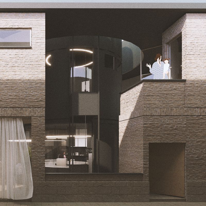 MianCook is a contextual infill housing prototype built within a decaying yet historically rich neighborhood. It avoids maximizing footprint and instead redefines the private–public boundary to foster social interaction. With a central kitchen as a shared heart, and a soft, flexible threshold connecting home and alley, the project enables everyday engagement between family, guests, and neighbors. It offers a replicable model for socially responsive, small-scale urban additions.