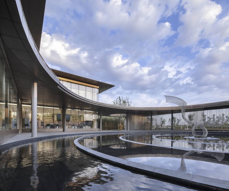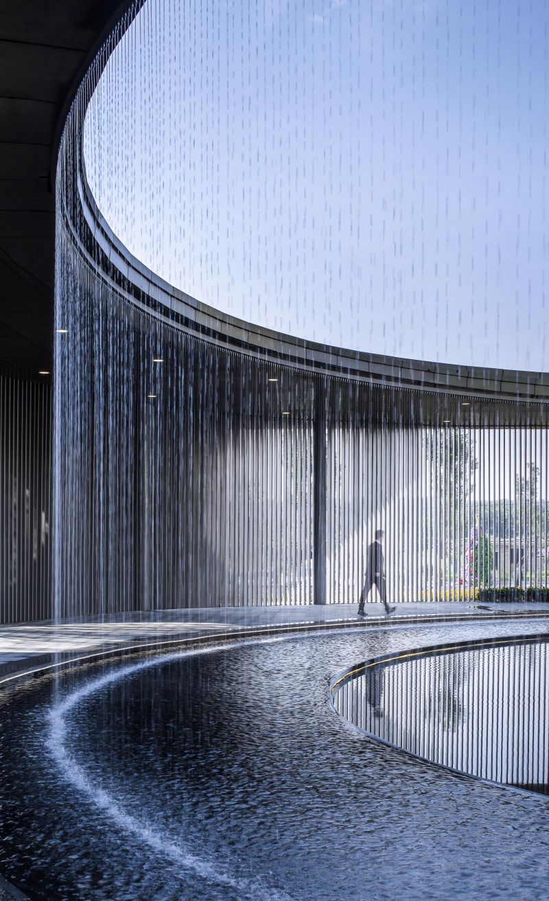 Xi An, one of the ancient city famous for its long history in China. As the origin station of “The Silk Road”, Xi An is always carrying the mission of developing Chinese traditional cultural. The concept is using the cultural element of "silk" to extract the characteristics into two architectural language as “softness” and “transparency”. We use curved corridor with waterfall to reflect the look of “silk”. The semi-transparent glass facade in the front and the parametric waving brick wall in the back are also corresponding “silk”,which is beneficial for making a richer visiting experience.