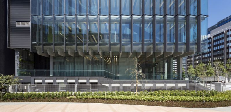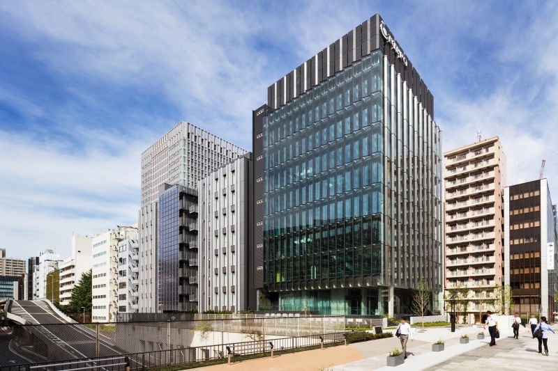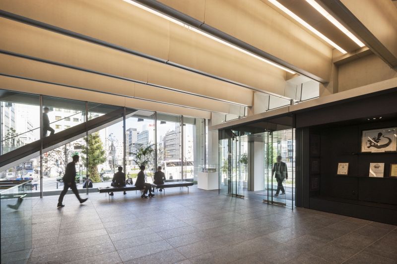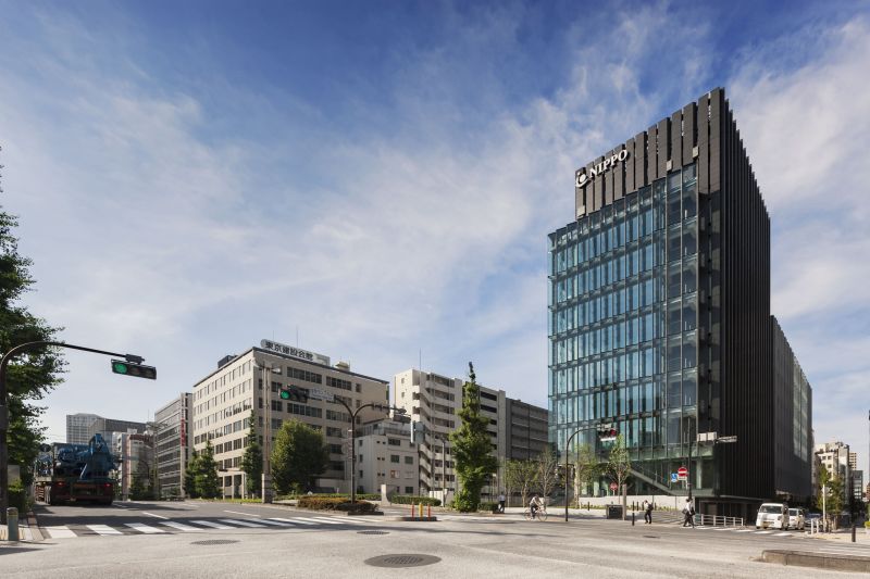 Nippo Head Office is built over a multilayered intersection of urban infrastructure, a traffic artery,an expressway and a park.