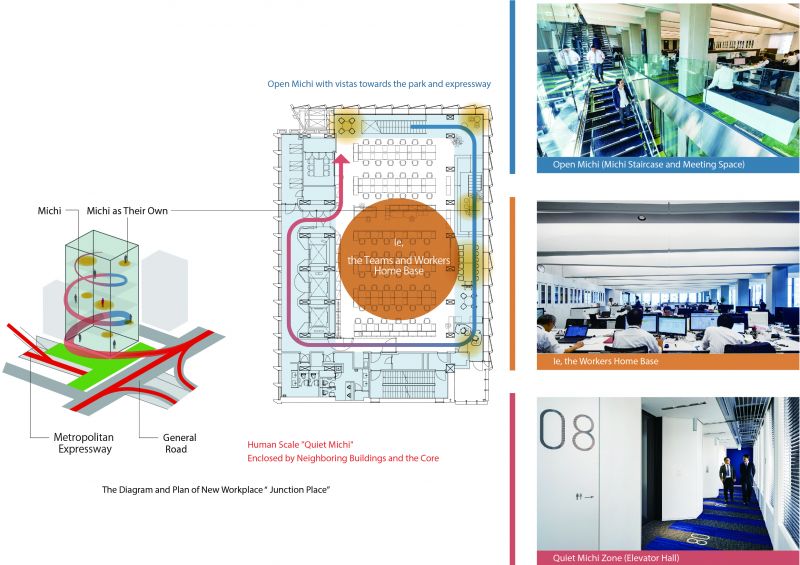 Michi was enhanced to forge“ creative connections” and to realize the“ Junction Place”,a unique work place possible only here at Nippo.