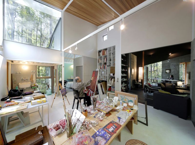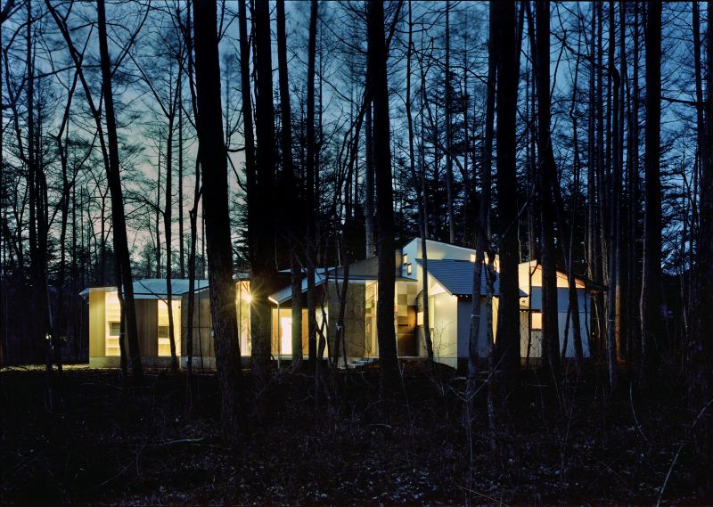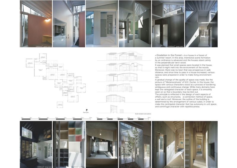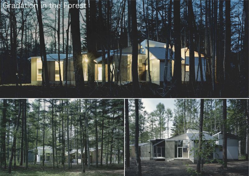 “Gradation in the Forest“ is made as a collection of small spaces. So, the house might melt into the environment of the woods.
