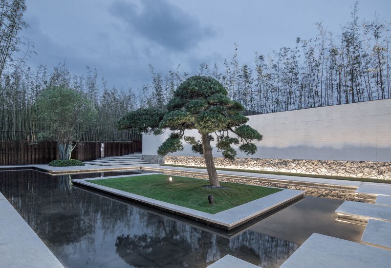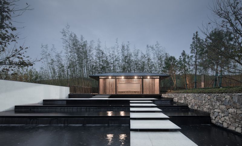 Guanyun Mountain Villas are located at the southern foot of Baohua Mountain and sit in the eye of Baohua, backed by a 4A national forest park and close to the east of Huangkeng Reservoir, and surrounded by mountains on three sides and lakes on one side. The overall direction of the site is from bottom to top, and the maximum height difference is about 20 m. The overlay villas are viewed from the eye of Baohua. The focus of the design is to express the Oriental Zen of secluded mountain residence, and integrate the Oriental residence's uncut simplicity into the project.