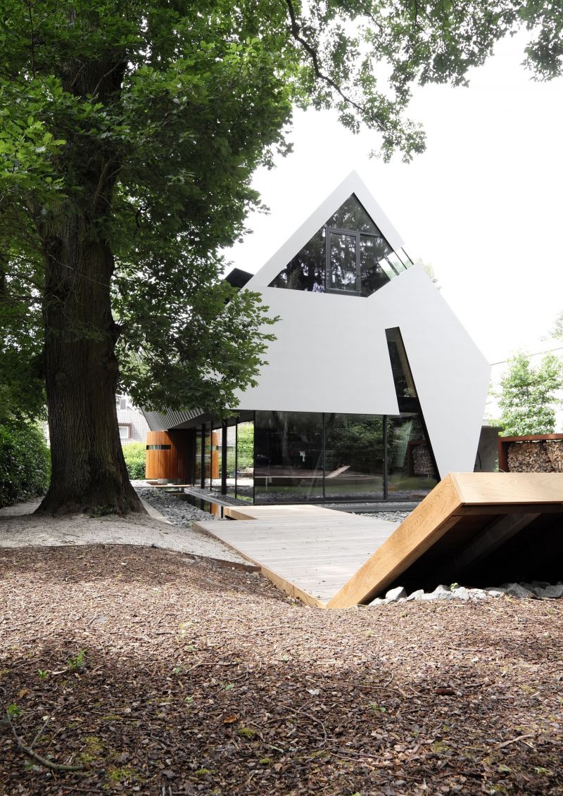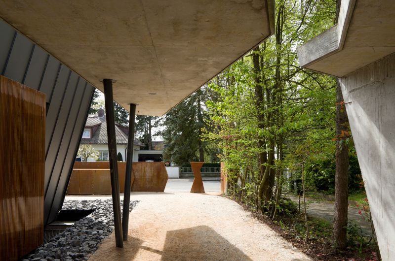 Our goal was to transform a very strict development plan into a serene, powerful and location-independent architectural form, while the existing trees should become part of the whole.