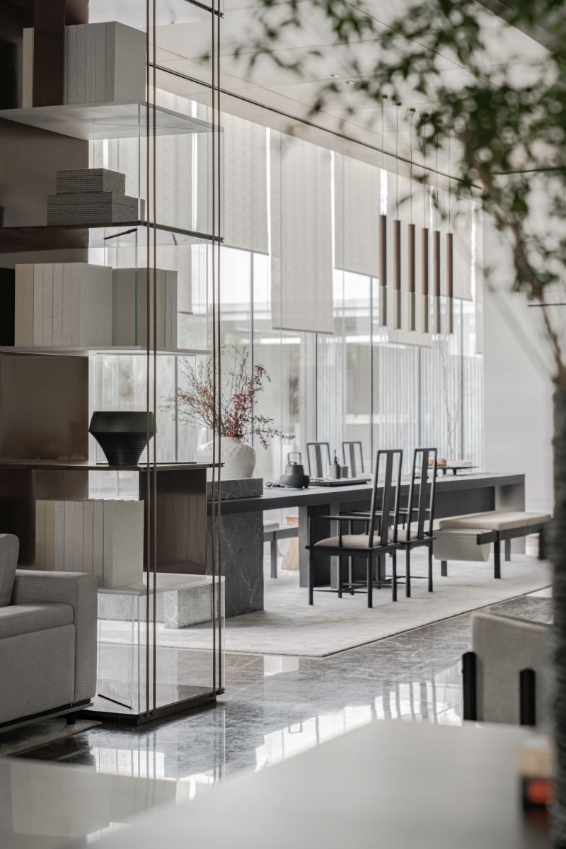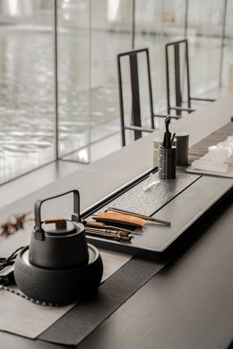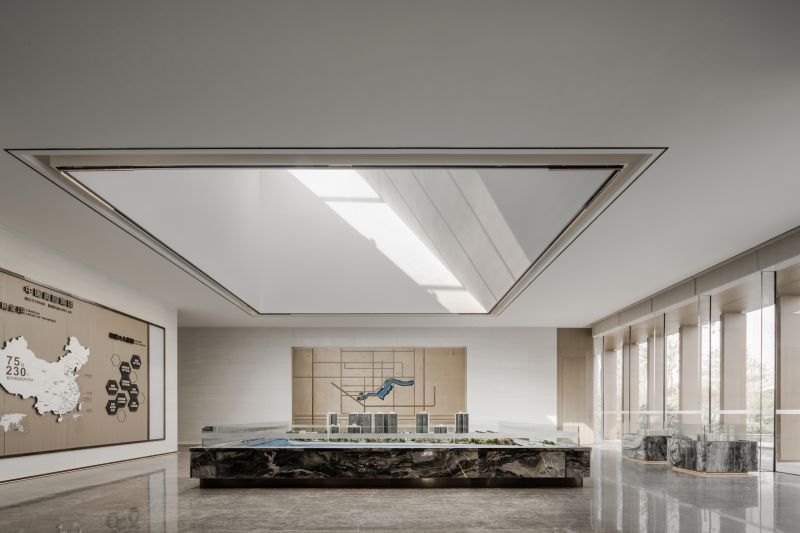 The design uses a concise and delicate storytelling way to create a free, relaxing and emotional atmosphere, interprets the connection between nature, culture and life aesthetics in an inclusive manner, blurring the boundaries of business and art space. "The beauty of lake water and tea culture" has become the theme of the design. It injects intimate and natural temperament into the space, and the transparent, pure and flowing colors run through it. The skylights introduce natural light and open the horizon to feel the expansiveness of the poetic lake residence.