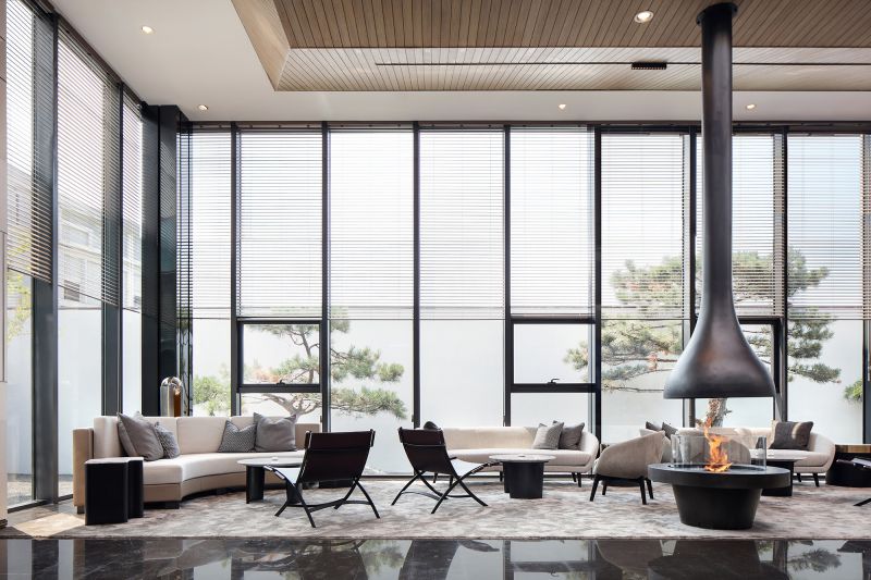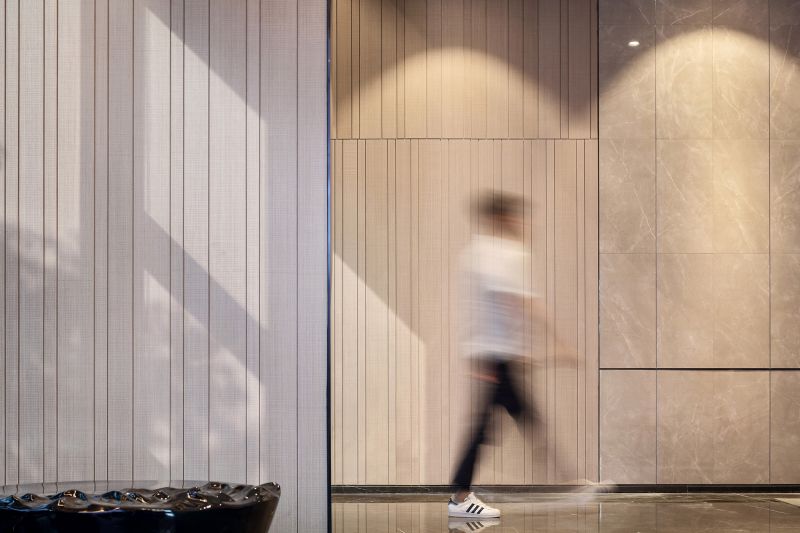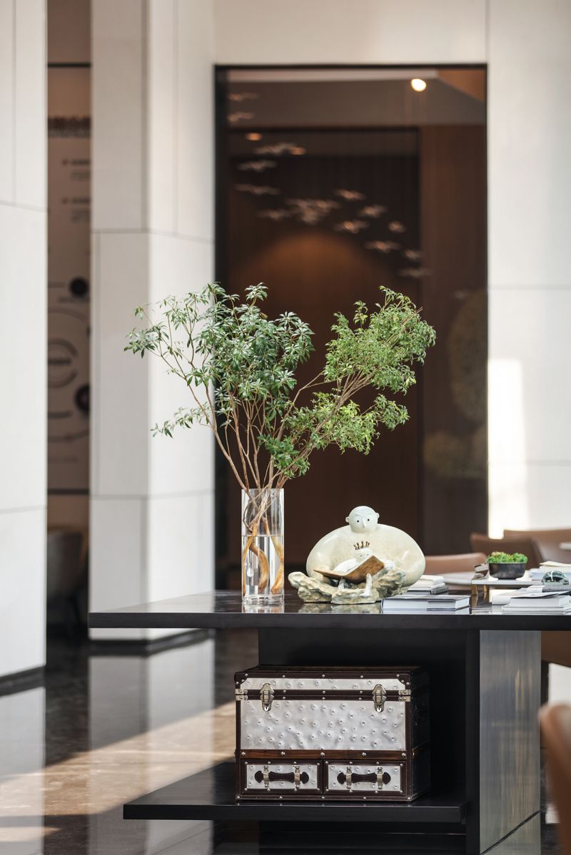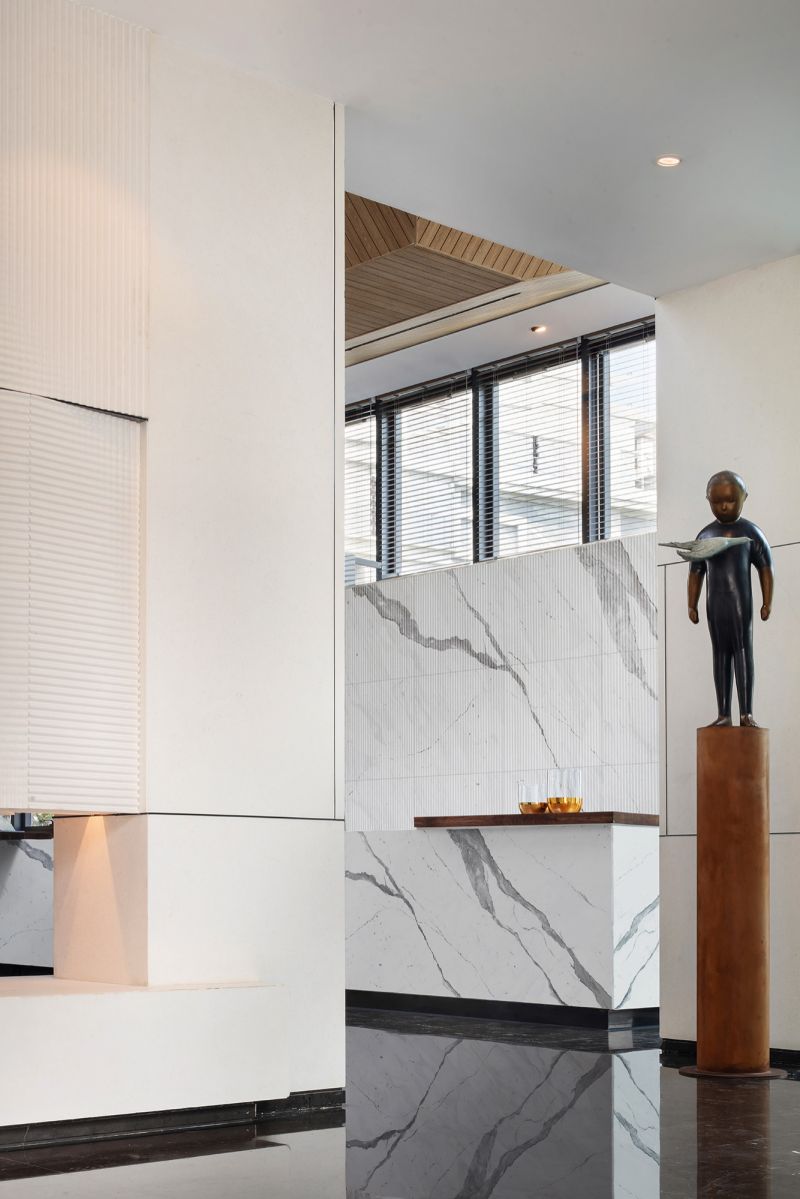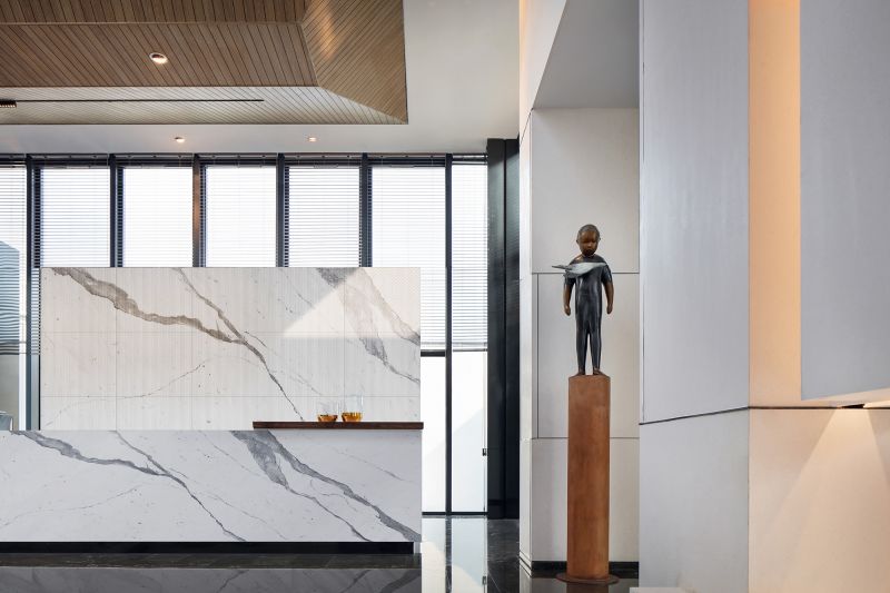 With a profound insight to interdependence between human beings, nature and art, the design uses light and shadow as medium to make art infiltrate into life, pure and exquisite. Infinite beauty is reflected through geometric structure, to trigger emotional resonance among viewers. Simply and luxurious design fully incorporates and brings out the best of tradition and modern. Large-size ceiling brings strong visual impact. Warm wooden finish generates calm and secure ambience.Natural light, coming from the long and narrow skylight in the roof,makes the overall space more open and dynamic.