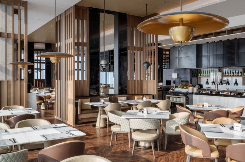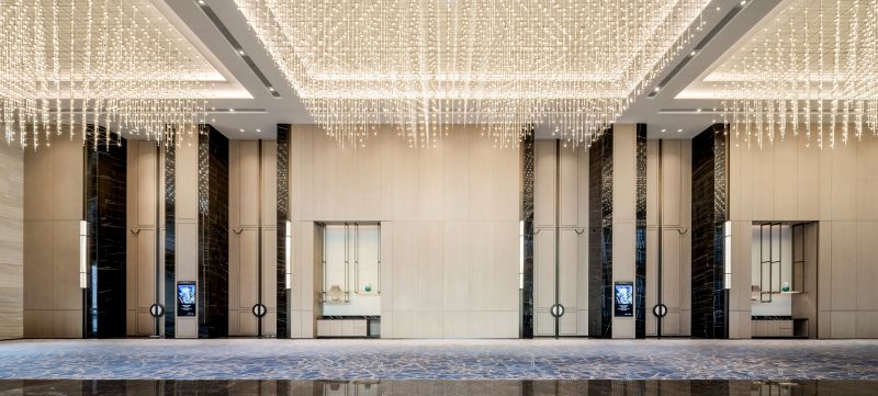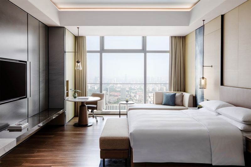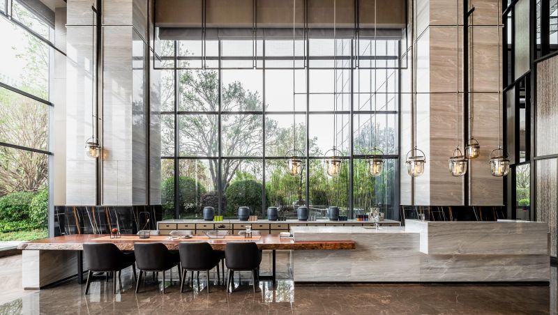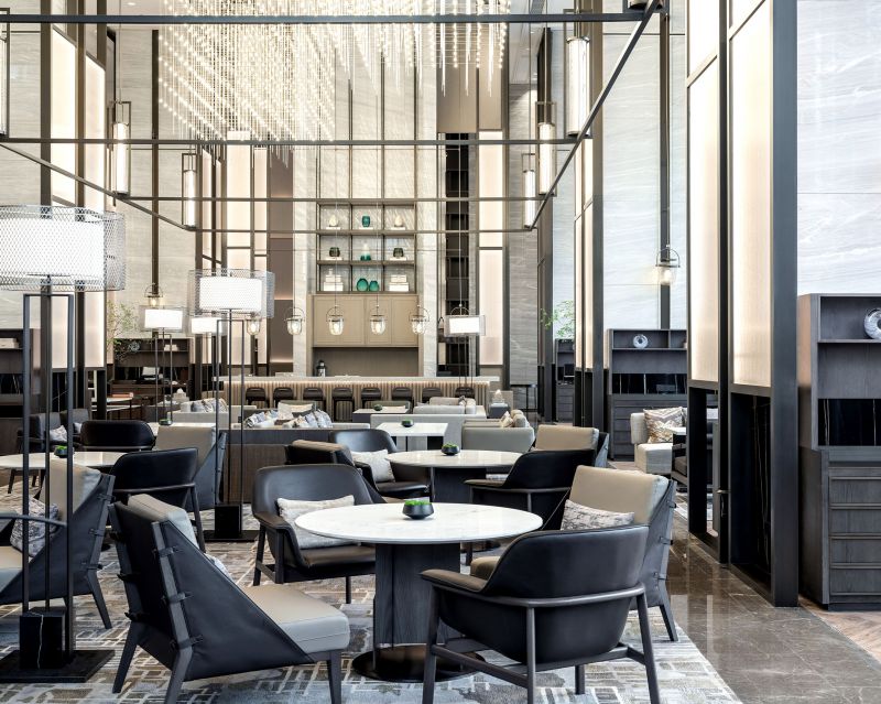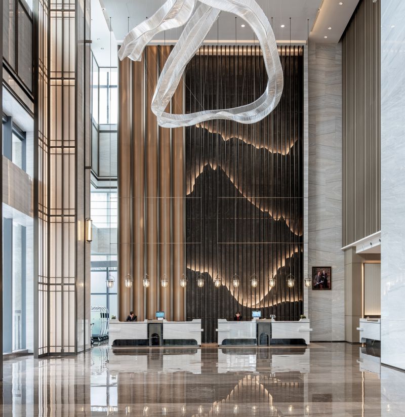 Set in the economic and cultural centre, Zhangjiagang Marriott Hotel is the city’s newest and most elegant iconic landmark hotel. It features 323 spacious layout guestrooms and suites with skyline views and open-plan bathrooms.As one of the port city along the Yangtze River, the Zhangjiagang hotel design details inspired from its unique geographical location.The designers used Oriental Aesthetic Chinese Shanshui Painting as a nursery of ideas in style. The fundamental core values of Chinese cultural philosophy were applied to design technique to emphasize the form of unity and harmony.