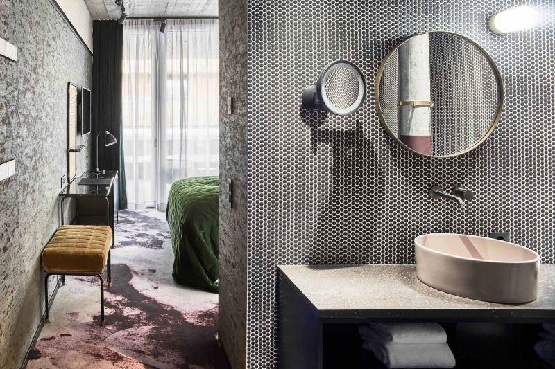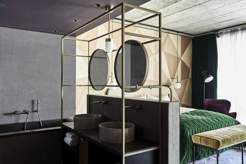 Flims is spectacularly located in the Alps of eastern Switzerland. Overlooking the village, the newbuilt Stenna Flims is an innovative experience centre that holds The Hide – an independent hotel and rethought mountain resort. As a contrast to the massive concrete building, The Hide fuses progressive alpinist interiors with cool luxe and voguish sophistication. The interior design is inspired by the surrounding nature and the geodes of the Alps, partially hollow rocks that hides a sparkling microcosm of colourful minerals. Likewise, The Hide holds the unexpected, just waiting to be discovered.