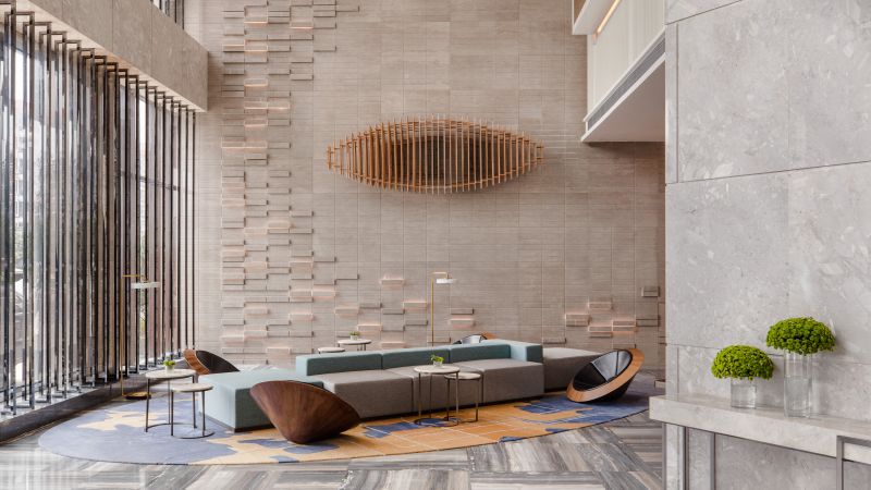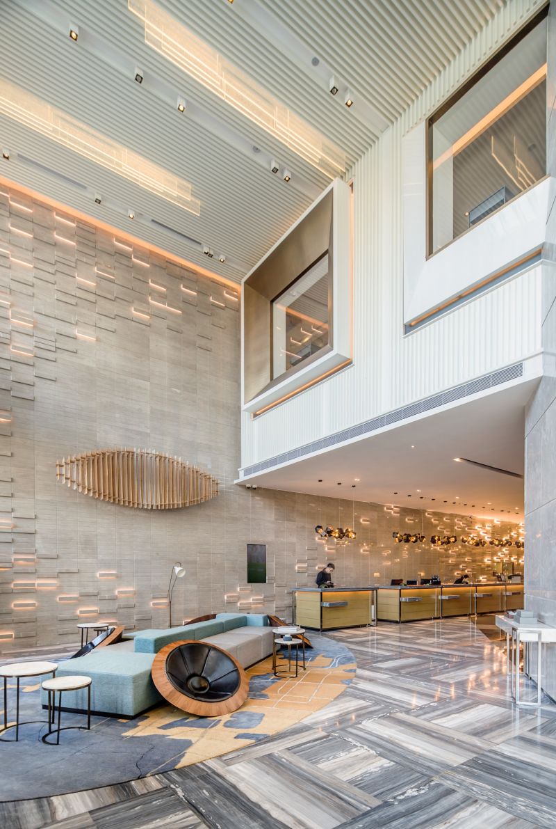 Courtyard by Marriott hotel blends the delicate traditional culture with the trendy defined design to offer a bold take on the contemporary business hotel.The hotel is designed to be chic and stylish with a combination of modern minimalist design and unique regional characterist. Originally Shunde made its name from agriculture and fishing industries. For more than ten years development, it was approved as a pilot city for the comprehensive reform of Guangdong. The design brief is to express tradition with a modern point of view base on Marriott International Group universal standard framework