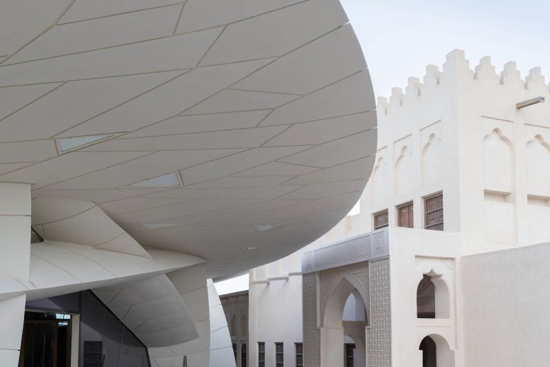 The National Museum of Qatar emerges from a desert that has ventured all the way to the sea. On the site, the Royal Palace of Sheikh Abdullah bin Jassim Al Thani rises up, a twentieth-century landmark of major heritage value to Qatar.