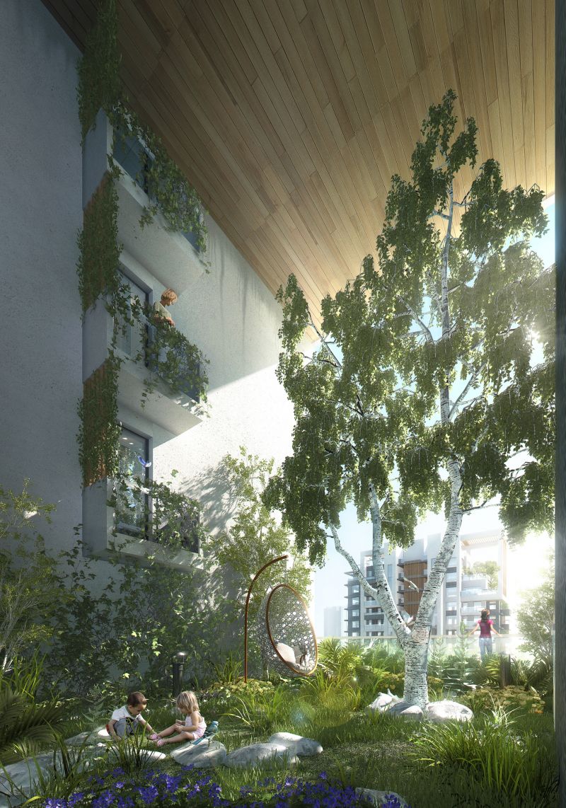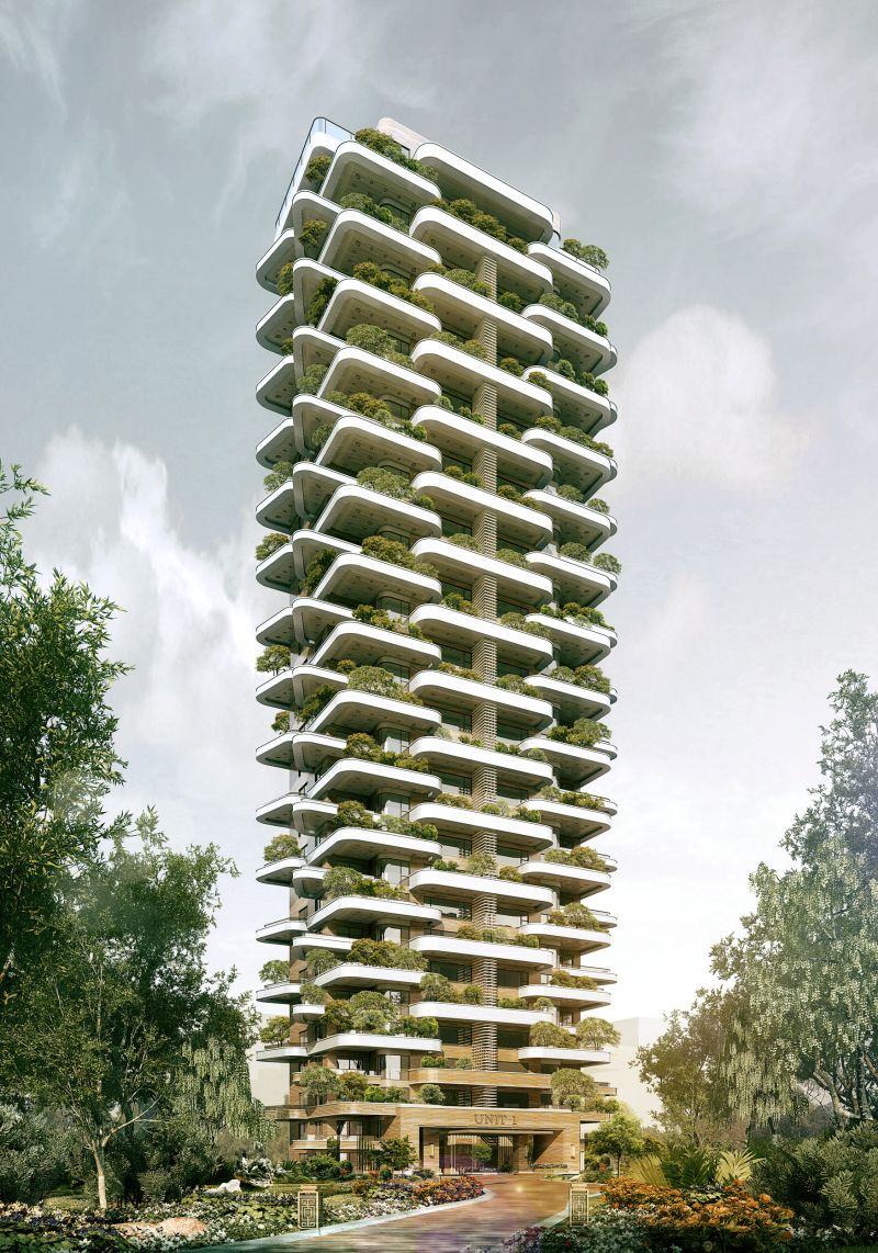 The intention of the architectural scheme is to create a new ecological living experience through the design, catalyzing the new living mode. Breaking through the previous splicing mode of residential design, the two households connect with each other through the super large scale shared air garden, transforming the dark and blocked elevator hall into the bright air park at the beginning, combining with "nano thermal blanket", "eggshell thermal insulation system", "real-time infiltration" and other technical guarantees, providing a public ecological social platform for the neighborhood.