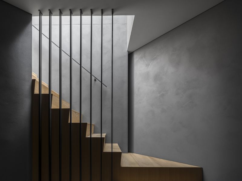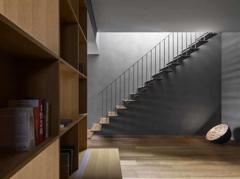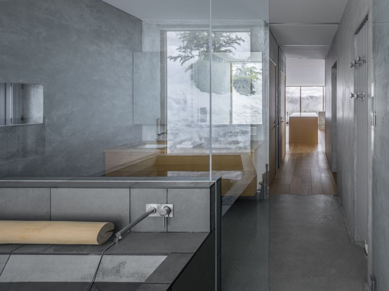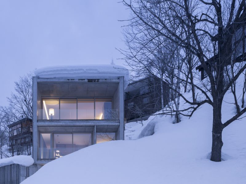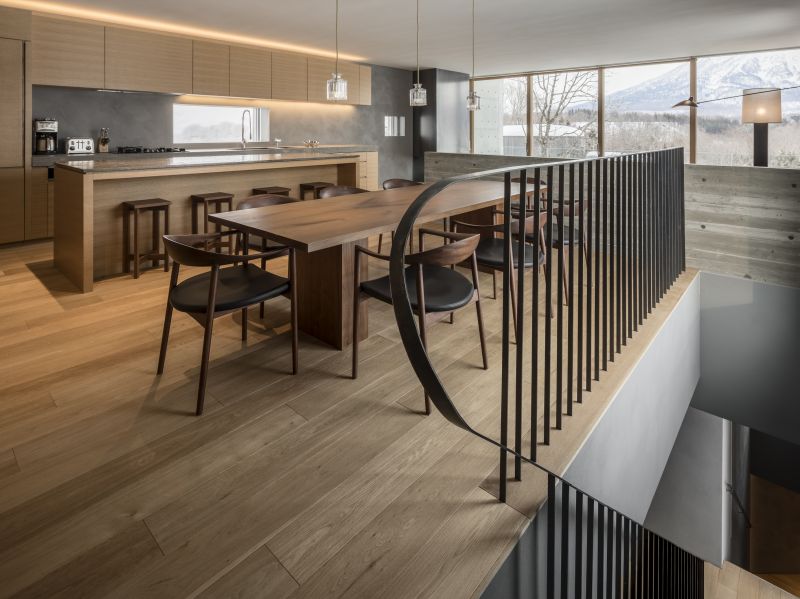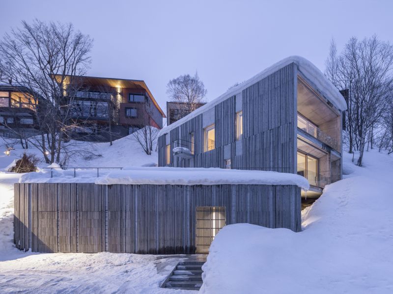 Kitadori is a three-storey house that forms part of the prestigious Escarpment housing estate. Kita means ‘north’ and dori means ‘bird’ in Japanese. The house was christened as such by the owner to personify a bird adapting seamlessly into the natural landscape in this northern region of Japan. Kitadori’s parti reads as two longitudinal volumes stacked nonchalantly like Lego blocks on the stepped earth. The two-storey top block is angled almost perpendicularly to the base, resulting in a generous outdoor balcony on the latter’s roof.