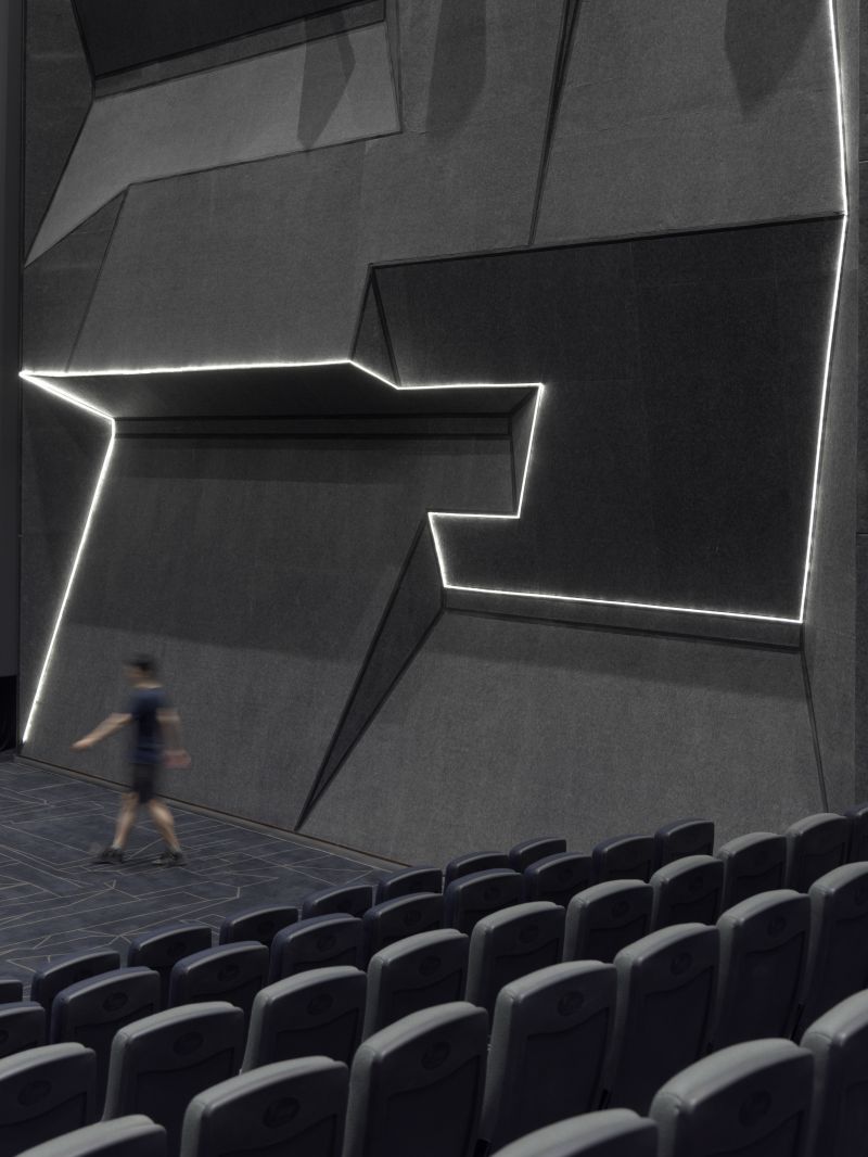 Movies played in cinema are images projected from the little lens of the projector to the large screen. This cinema applies the theory of projection as the theme, bringing the movie element to the entire space. Normally, one would think of adding elements into the interior while designing. This time, designers think out of the box and use adverse thinking by imagining the space as a cubic volume and applying subtraction concept to shape the space. It does not only emphasize the form of the architecture, but also interestingly combine the elements of architecture and interior design.