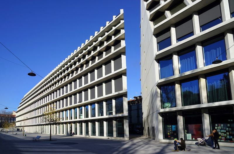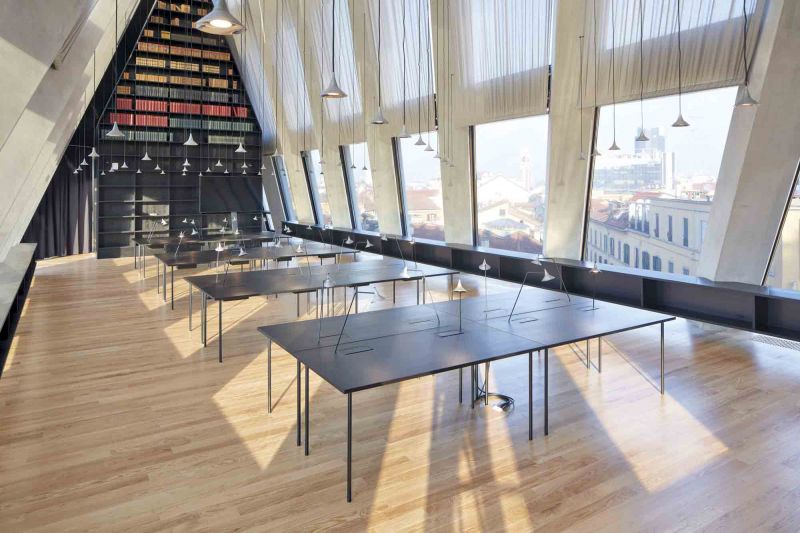 A narrow gap separates the Fondazione from the adjacent building, reflecting two autonomous constructions which are simultaneously part of an overall whole. The ground floor of the Fondazione accommodates the main entrance, cafeteria and book store, followed by the double height multi-functional space on the first floor, and an office area on both the third and fourth floors. The reading room on top of the Fondazione offers researchers and interested public the opportunity to study documents from the historical collection stored in the secure underground archive.