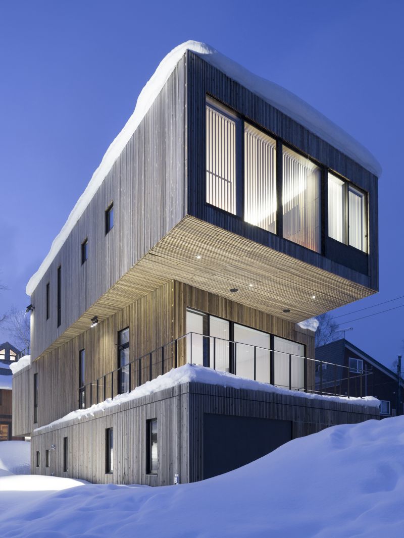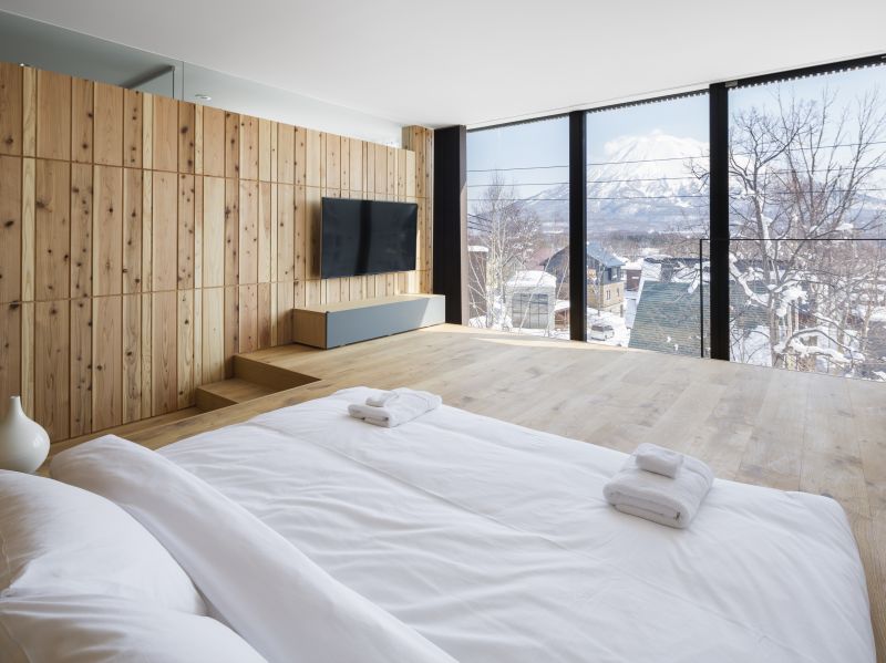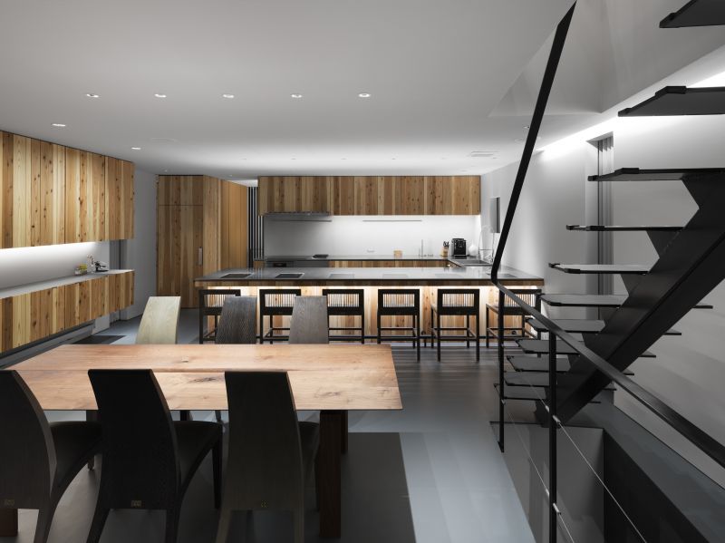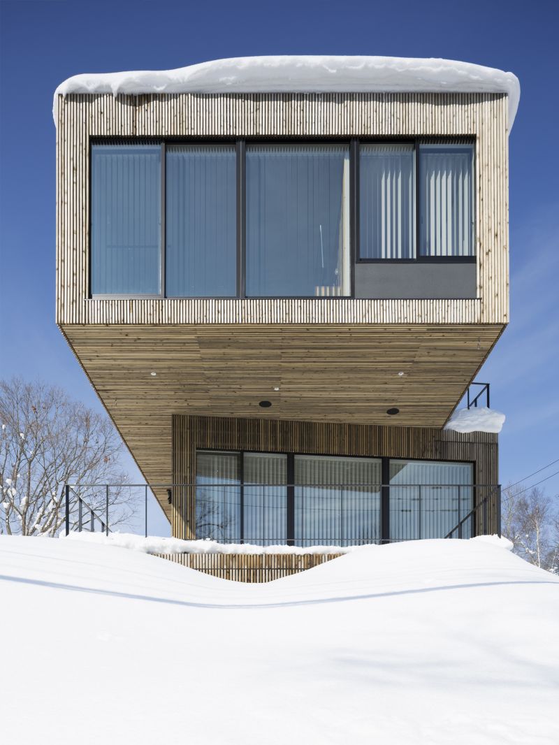 The Strata House pushes the boundaries of residential design with an abstracted design far from the familiarities of typical housing tropes. The house’s stacked composition results in several sheltered outdoor spaces that become a parking lot on the ground storey and balcony on the second storey abutting the living space. The client also desired a clear view of Mt. Yotei, which comes about through the slight shift of the second storey volume. The brevity of formal gestures reflects a reductionist approach, where nothing is done in excess.