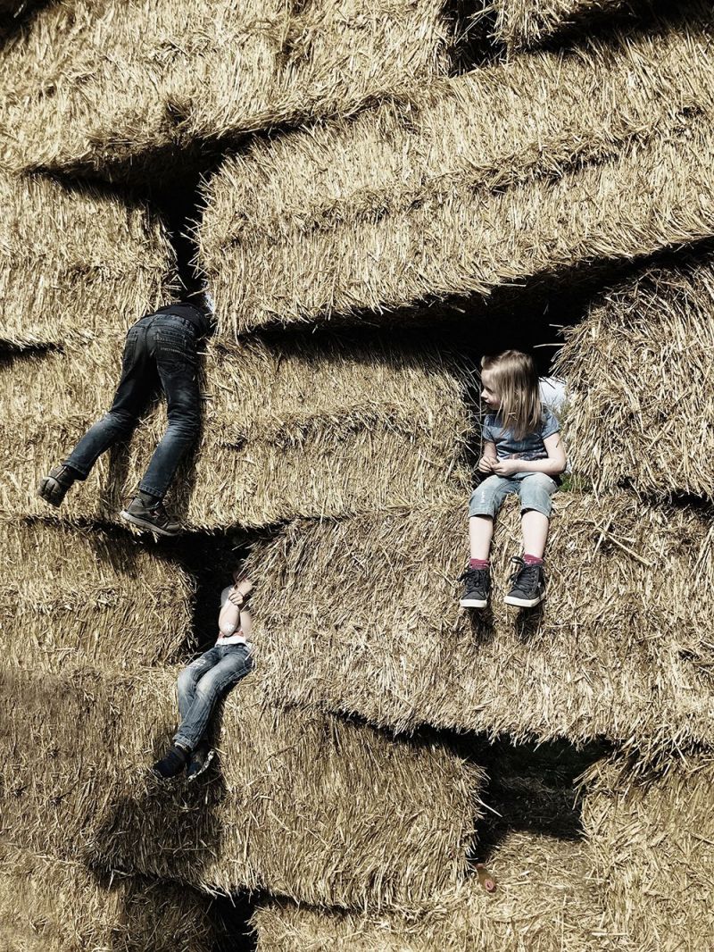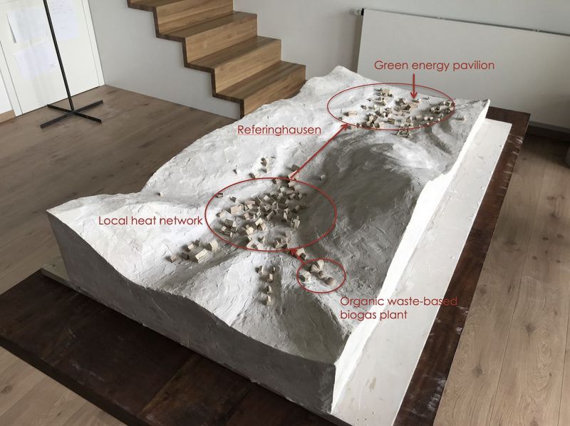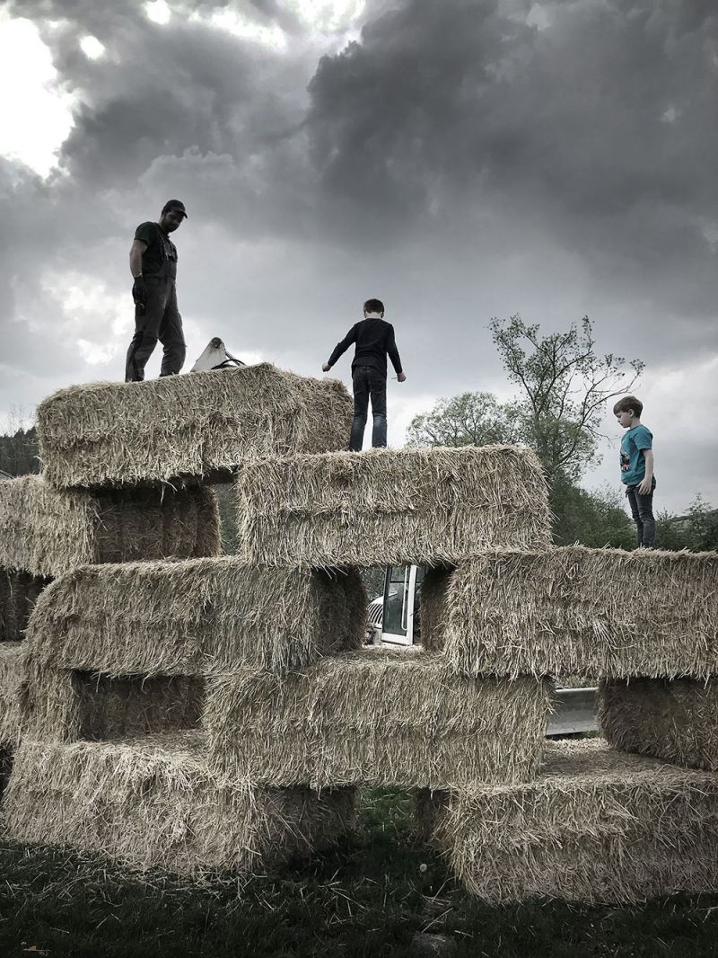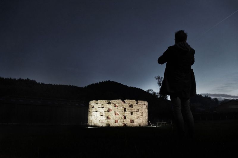 The green energy pavilion celebrates a milestone in the history of the German village of Referinghausen. During its 750th anniversary, in the summer of 2019, the community demonstrated — in an atmospheric way — how the village is from now on independent of the global energy market. Due to the self-built local heating grid network, which is connected to an organic waste-based biogas plant, energy costs have been reduced by 50% and CO2 emissions by 100%. The steel basin with hot water in the center symbolizes the energy, the straw is a metaphor for the biomass from which the energy is generated.