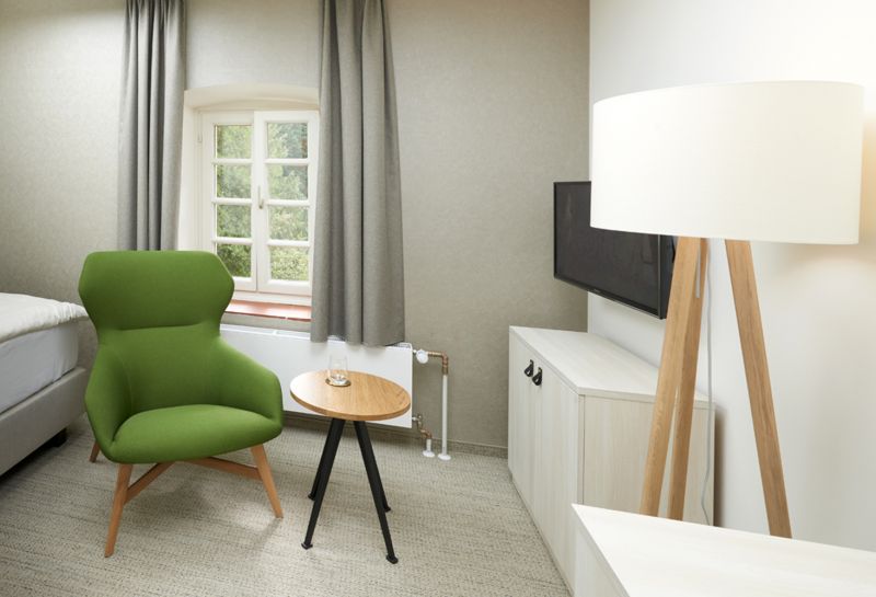 The historic moated castle has been converted into a psychosomatic private clinic in which 80 patient rooms are comfortably accommodated. Spacious lounges, such as the knights' hall or the bridge room, therapy rooms and the restaurant complement the patient’s stay apart from their private rooms and surrounding nature.