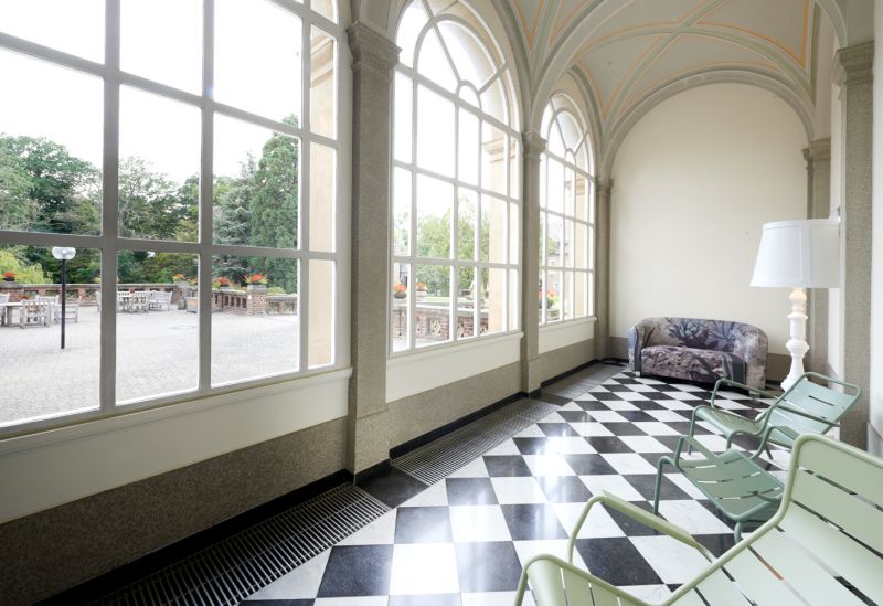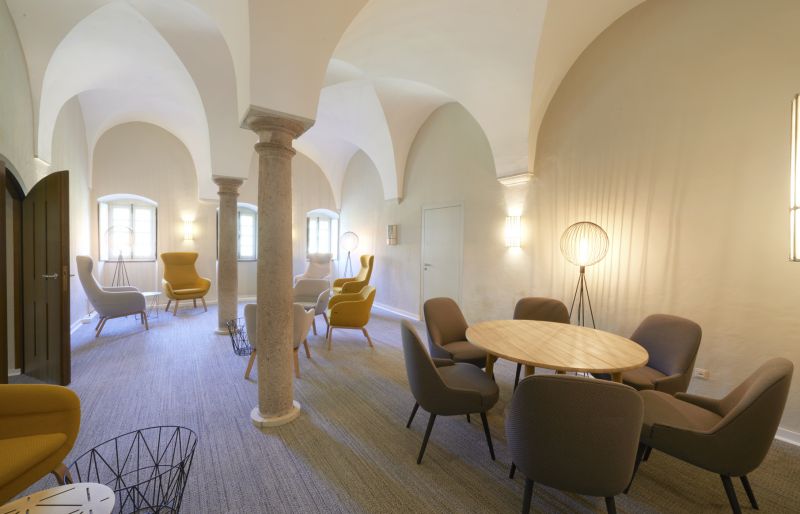 Adaptive re-use, by conservation of the castle's past, meanwhile the strong design emphasizes the charm towards the future. The therapeutic concept of presence therapy is supported by the high-quality design, as patients feel safe and secure.