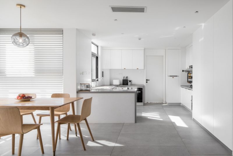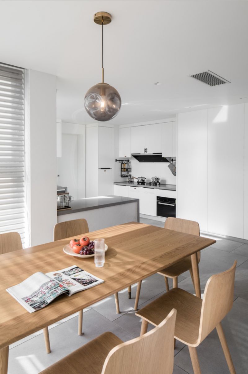 Home, as having the most close of people together, to create a colorful life in the warm space, everyone here to carry the life yearning, and the case owner both belong to the fashion design industry, has a high quality of life of the pursuit, in the space of the building designer to create a minimalist life space, abandon trival adornment, return to the side of the primitive life. Choose white and natural log color as the main tone of the space on the application of color.