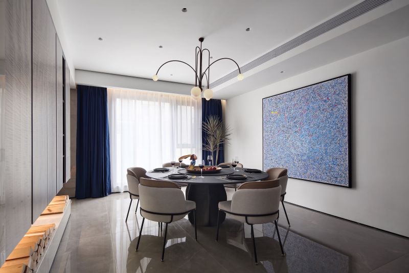 Because this project was two units become one, a new space order was needed. The original movable wall was removed, the functional areas were merged. Return to the home space in the form of rational thinking, show the comfort and meticulous human care, plan the smart and open layout and the concept of intelligent life. While paying attention to order and function, it injects peace and stability, and expresses quality space in a quiet and artistic way.