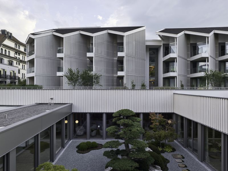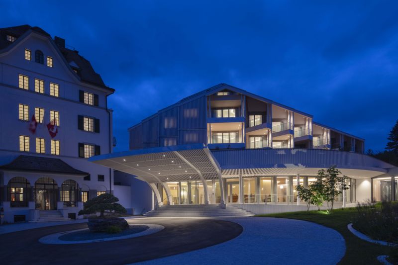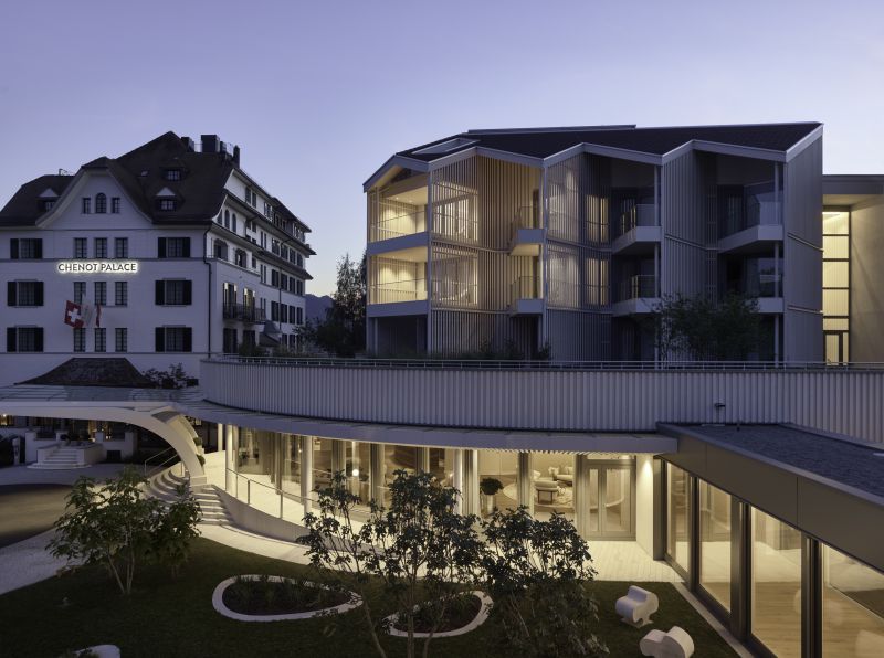 Chenot Palace Weggis’ design concept aims to harmonise the old with the new. Natural and locally sourced materials have been used throughout the modern aesthetics combining themself to the Swiss traditional building aesthetic of the existing elements, preserving the heritage and character of the original architecture.