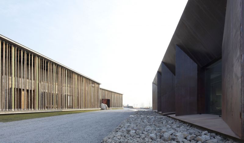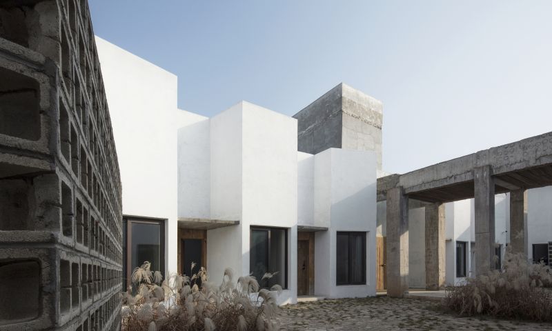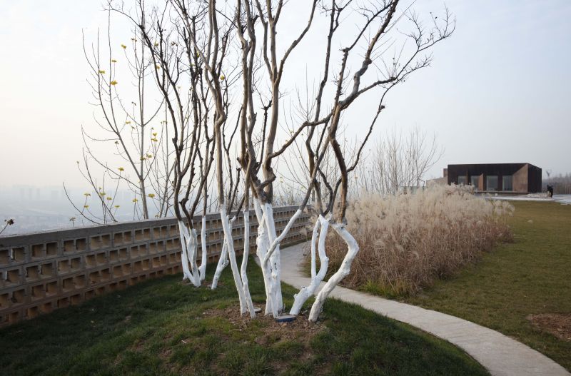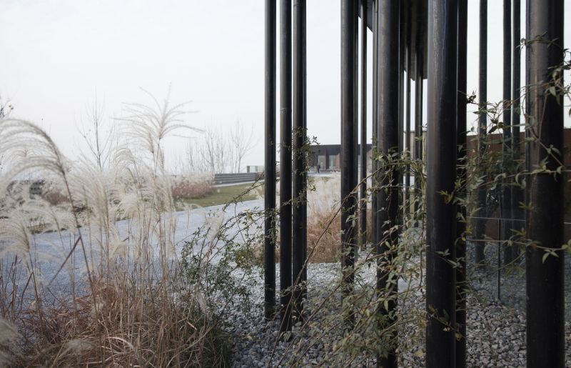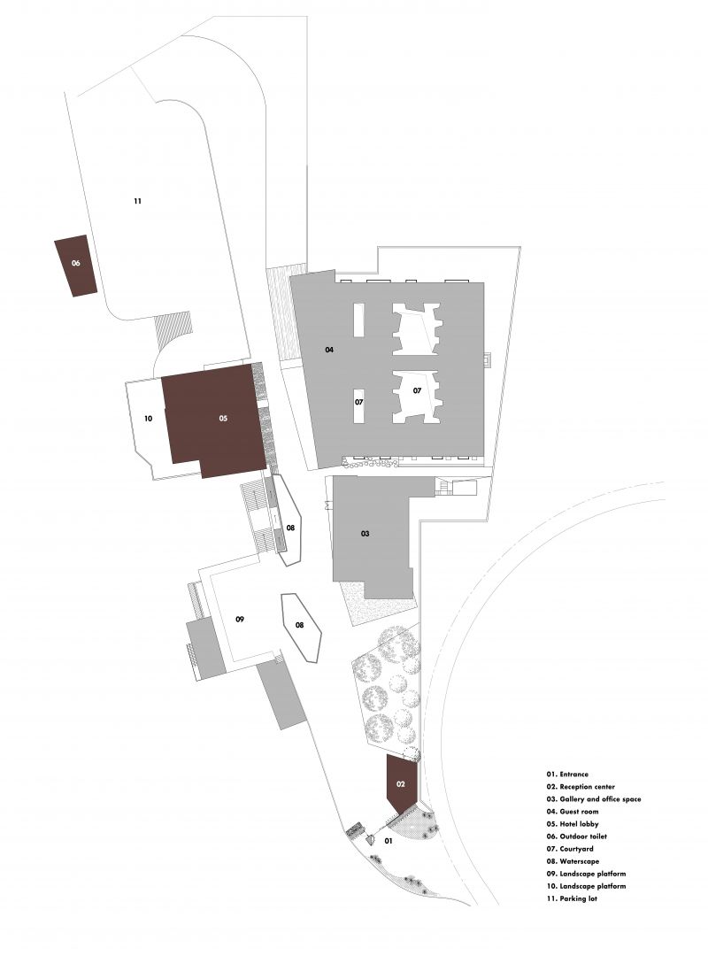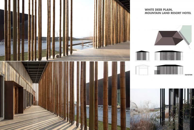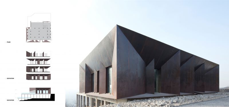 The main building is demolished and only concrete frame structure is retained. Take advantage of the characteristics of the terrain and the falling height between the top layer of the main body and the ground,to build a highly visual impact of the tin box dimension. To form strong contrast with the architecture framework, highlight the material application and dimensions of the building, changes of light and shadow, and also the rhythm of space level, as well as the scale change of the relationship between human and architecture.