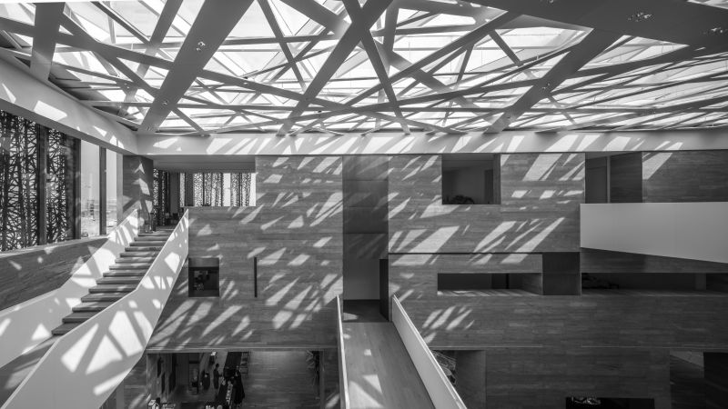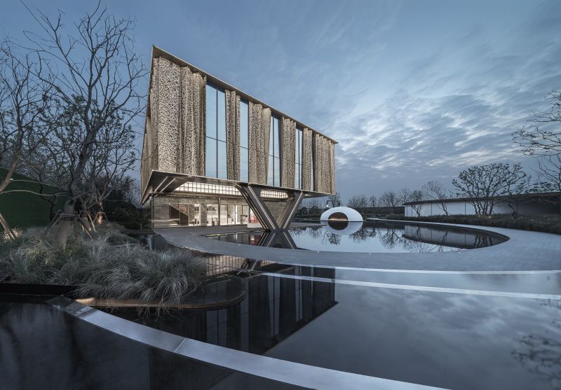 This building is adjacent to Chongqing Yubei District Huashigou park and located on a hillside, the designer coordinates the building and environment peacefully without trying to destroy or defeat their direct background. As a community activity center, hope that people will not look up to it, but lower their perspective to experience it personally, which is the destination of architecture.