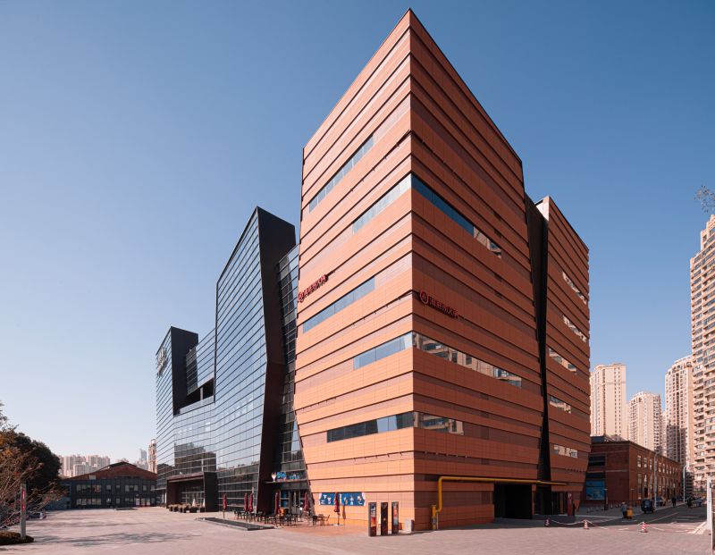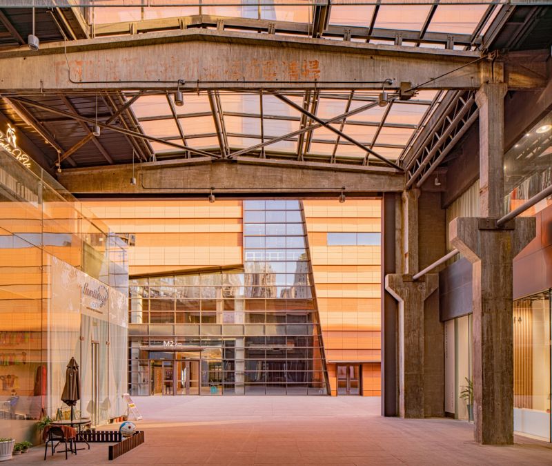 The design concept of this project is the rock and crystal on the canal bank, which echoes the red sandstone mountain with the red brick workshop in the phase one.