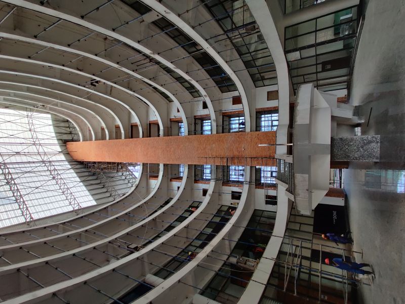 The atrium diffuses quality natural light and ventilation to the floors whose balcony accesses give maximum subdivision pliancy-useful in a city where businesses wanting to rent may not be big enough to fill a floor. The roof is a massive solar energy harvester and rainwater catchment area.