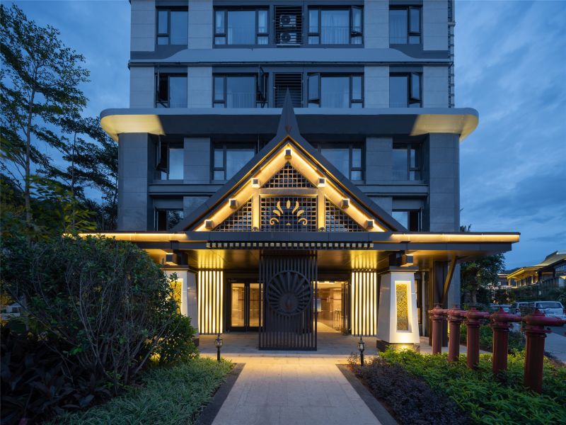 The project base is located on the Bank of Lancang River in Jinghong City, Xishuangbanna, with a line of river scenery and tropical rain forest mountain scenery, forming a landscape of its own. The architect fully explored the unique resources of Xishuangbanna's tropical natural environment and ethnic customs and culture, and integrated modern design into the architectural cultural characteristics of Dai nationality for innovation and transformation. The architectural appearance with unique national characteristics reflects with nature, making space and time blend here.