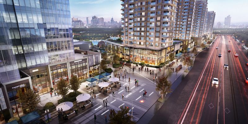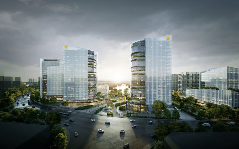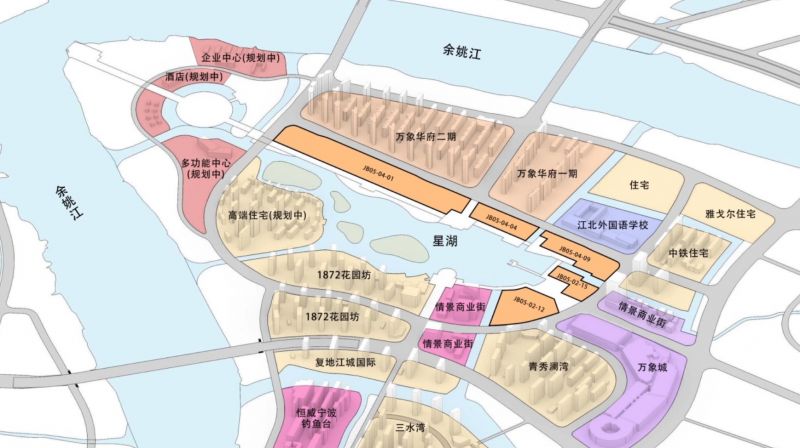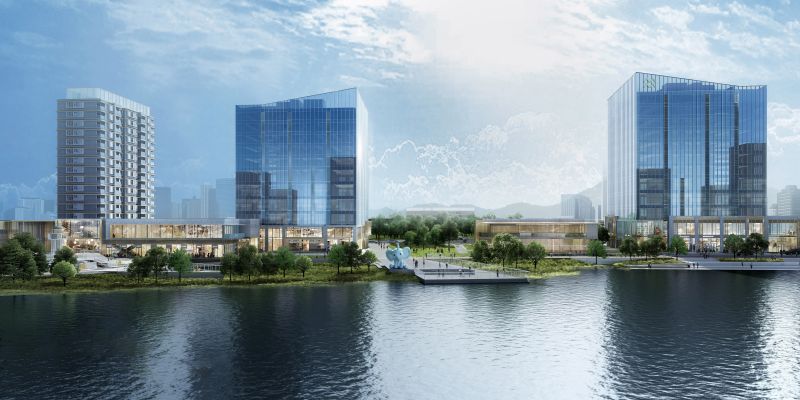 The five land parcels are considered as a whole to retain the original urban axis and natural water system; according to the principle of space syntax, "the visible is also the reachable", crowds are introduced from the urban nodes to the Xinghu Lake, which improves the spatial vitality of the Xinghu Lake, thereby achieving the openness of urban space.