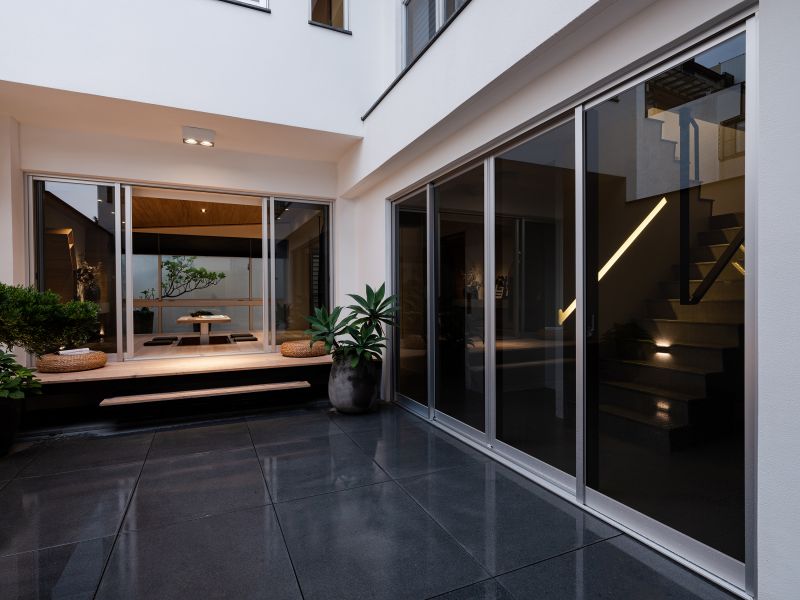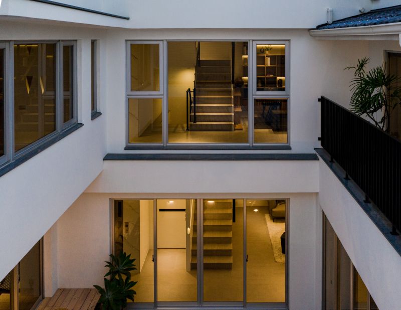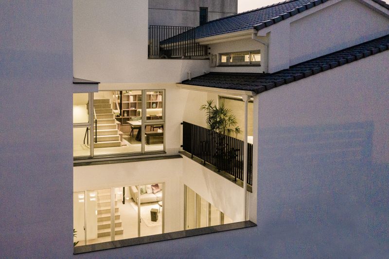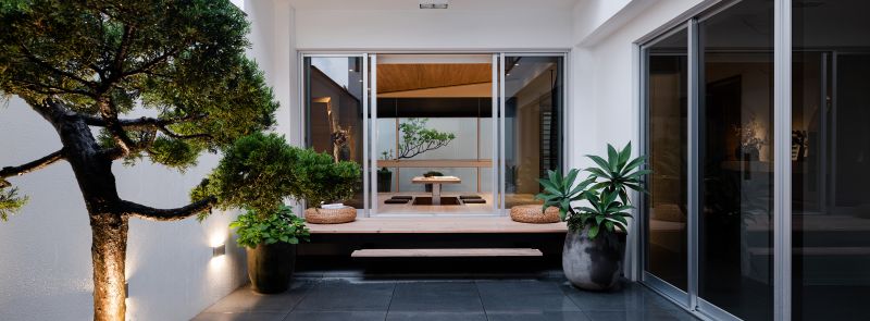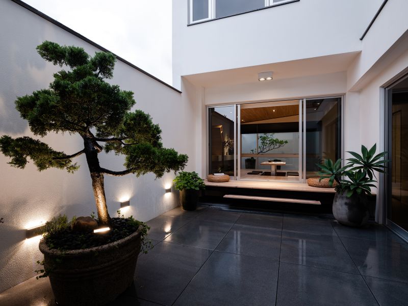 Adopt simple and cozy Japanese living style as the interior design notion to echo the exterior pitched roof of Japanese custom, accordingly plan a multi-function Japanese-style room and a health preserving hot spring bathroom. The layout is set of American open-concept, cut-down the unnecessary private compartments. Deliberate on the multi-layer manor of long and narrow pattern, in the center part of the building, cut off an area to configure the inner patio, each corner can enjoy bright sunlight and fresh air. Construct a gallery-like building of avant-garde art and contemporary aesthetics.