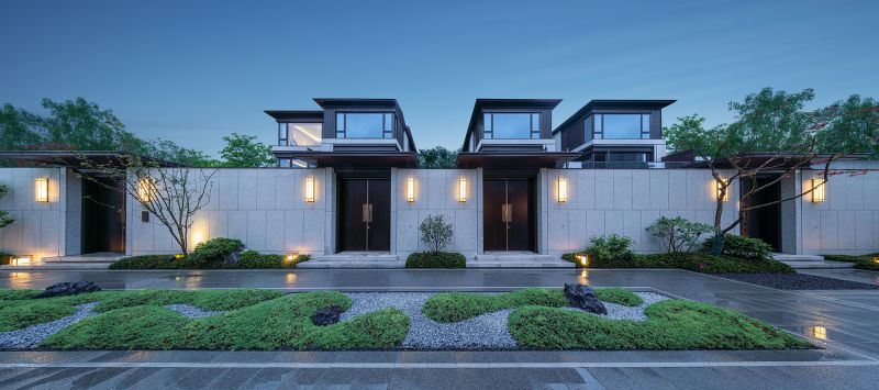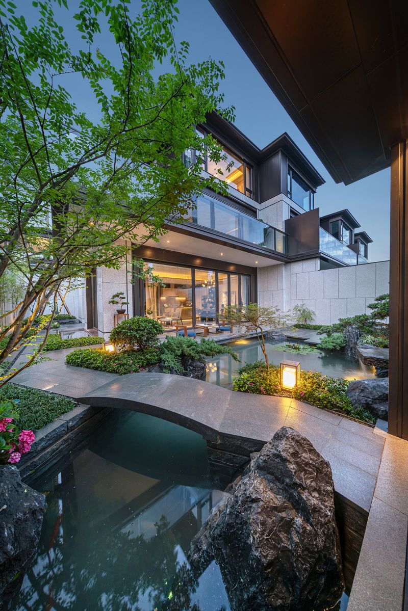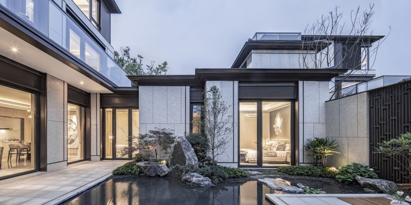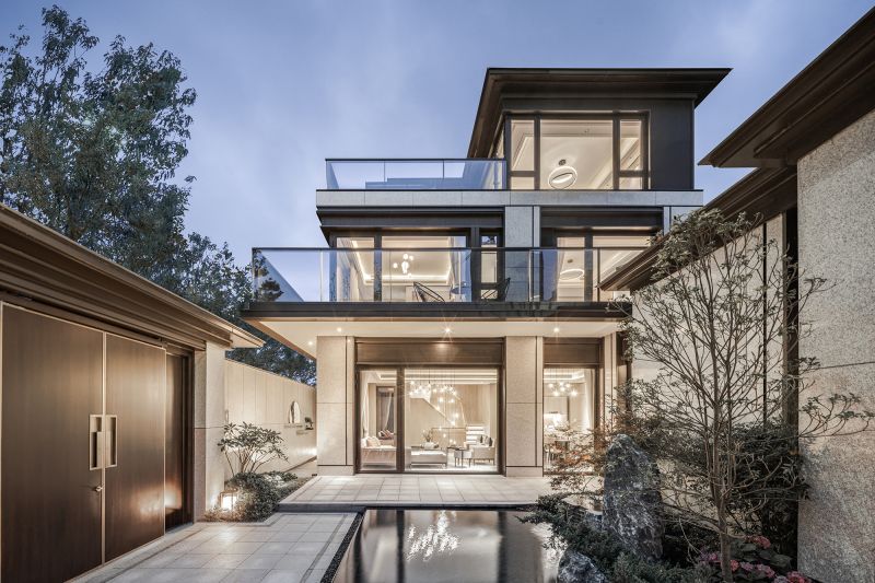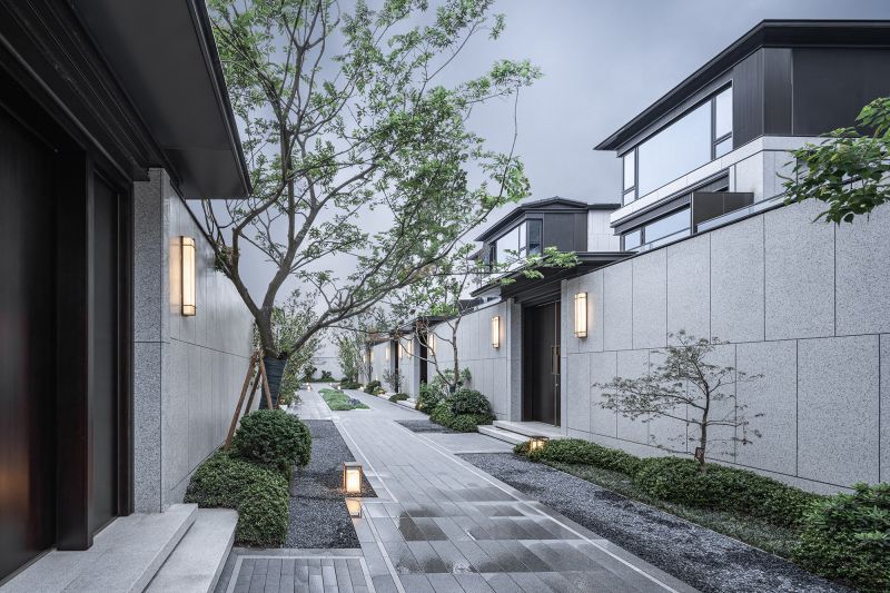 The project adopts a homecoming system of five-level ceremonies. The entrance & exit of the independent community follows the entry ritual system used in a wealthy and influential family in ancient times. It features a form of a backward carriage yard. The private courtyard of each residence acquires the essence of Jiangnan courtyard that one house is equipped with six courtyards, which form a distinctive space that courtyards are built both from inside and outside of the site, as well as the surroundings.