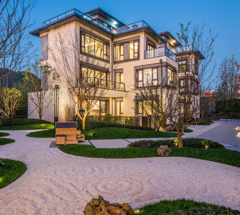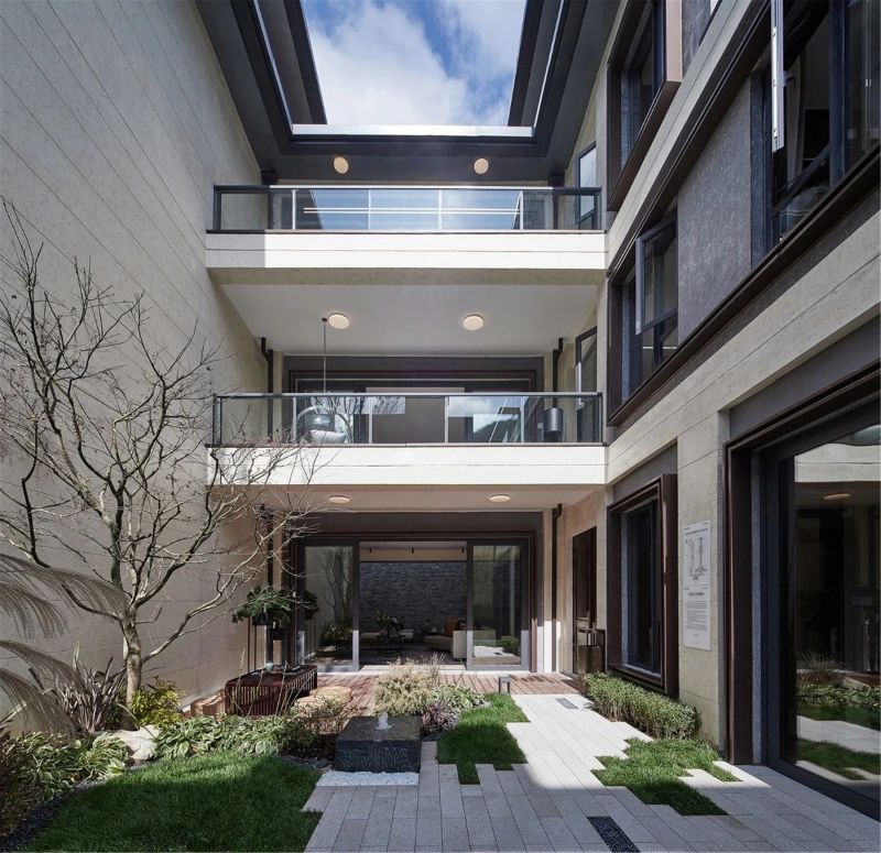 The design logic of jiuchen villa is the interpretation and expression of Oriental aesthetic gene. Around the mountain, taking the mountain as the scenery, the garden layout is used to arrange the buildings. The overall landscape planning is "three axis, four gardens, six courtyards, nine lanes" space layout, reasonable use of elevation difference as parking space. At the same time, it retains the space design logic of garden, lane, courtyard and house, and expresses the oriental aesthetics based on "etiquette and order" to the extreme.