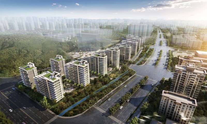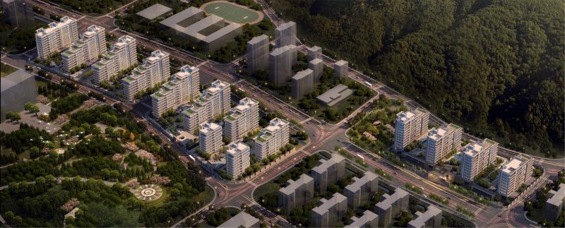The project is surrounded by mountains and beautiful scenery. The design takes both mountains on two sides of Feng Huang Road and surrounding buildings into consideration, establishing a soft skyline, and enriching city interface by terrace. The concept of courtyard-in-air is introduced to build inner courtyard, open balcony, terrace, and triple courtyard. Terraces give homeowner private rooftop courtyard space to view the scenery and to enjoy the nature. To reduce the pollution, the surfaces of the project are set with eco-friendly landscape.