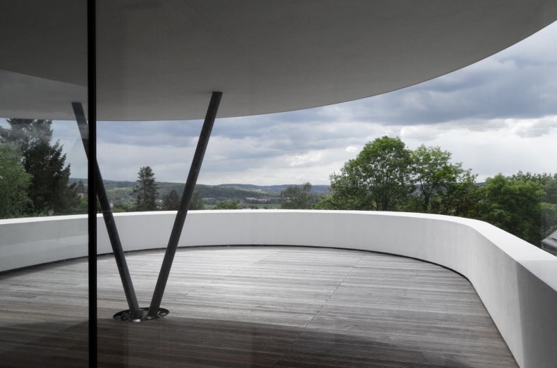 The main axis of the building is pointing south, where large window planes are placed in order to make the maximum use of the natural energy of the sun, while suffusing the interior with light. At the same time, the defined roof overhangs and the glazings in the