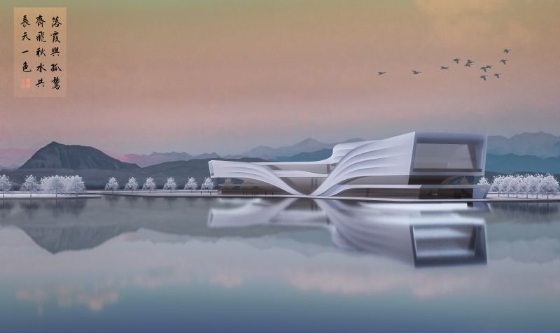 We designed a Flexible and Artistic-Sculptural building along the Qinhu Lake. The architect form is organized around the concept of the outline of Yu-Mountain、the water of Qin-Lake and the string of Guqin.