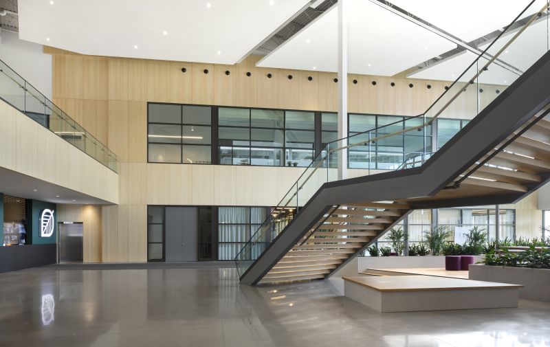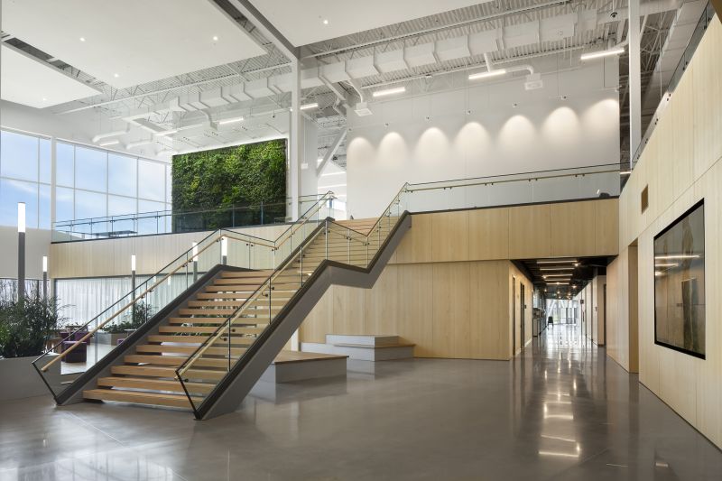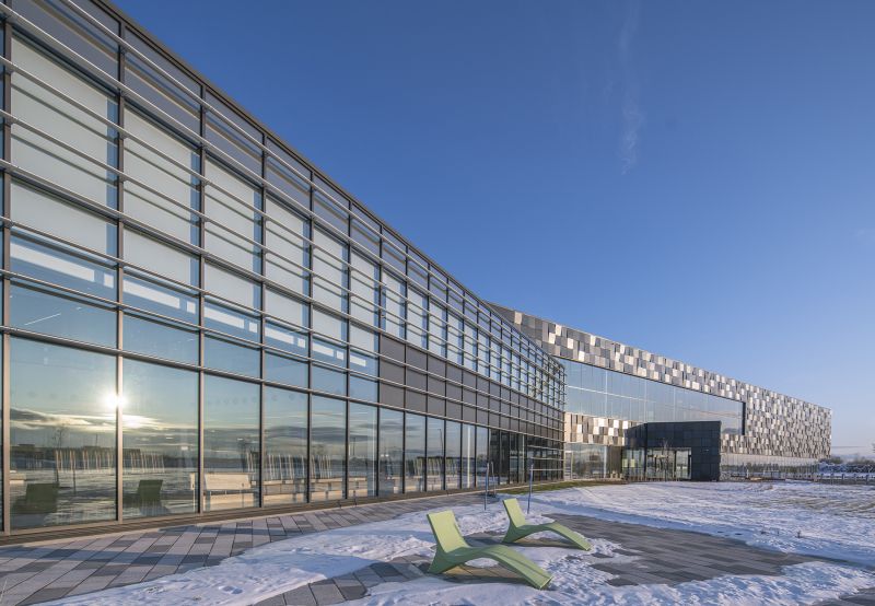The project designed by GKC Architects concerns the creation and construction of the new distribution center of Maison Simons in the northern section of Quebec City. This new distribution center, named Campus Simons, is architecturally modern and inspiring. Inspired by the fashion industry, the concept revolves around the symbolic themes of modeling and weaving, and promotes architectural cohesion and occupant well-being. The solid volume is weightlessly structured and reflects creative thought. The interplay between light and shadow mimics the effervescence of artistic design.
